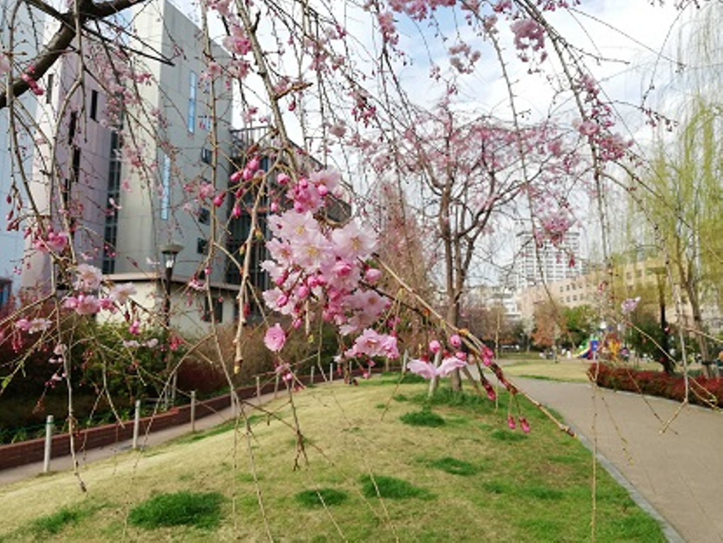 こちらはオフィスから2.3分歩いた所にある築地川公園に咲く桜です。