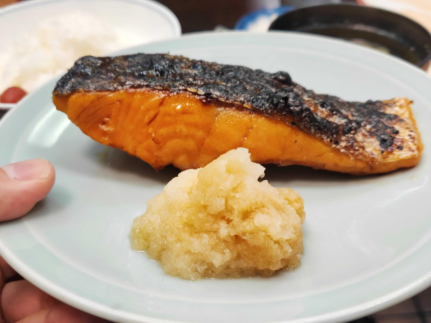 ・「魚竹」の銀鮭照り焼き 価格1100円、会社から5分