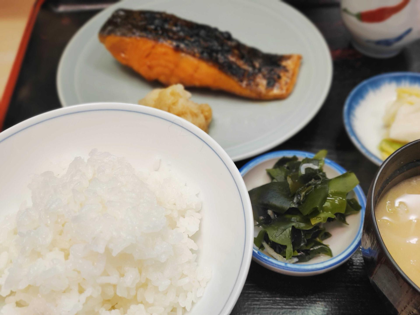 焼き魚では築地どころか、地球で一番おいしいと思っています。炭火で焼かれた皮の香ばしさとふっくらした身がごはんと最高に合います。白菜の浅漬け、わかめの酢の物、豆腐の味噌汁がつきます。日本人でよかったなと思うごはん。親が上京したら振る舞いたい食事ランキング上位です。
