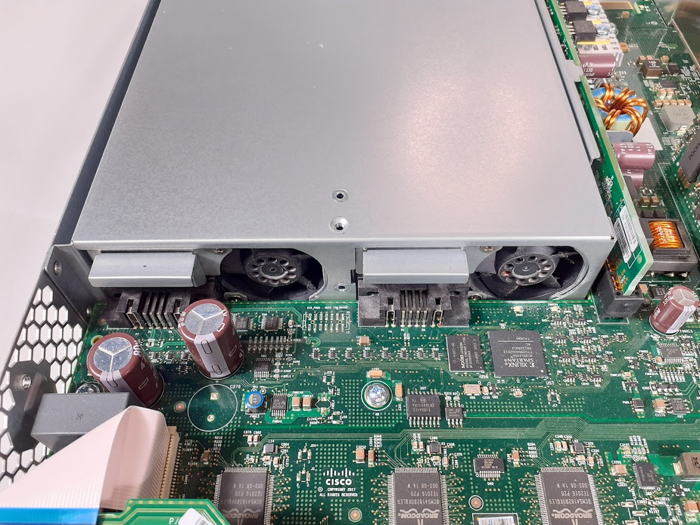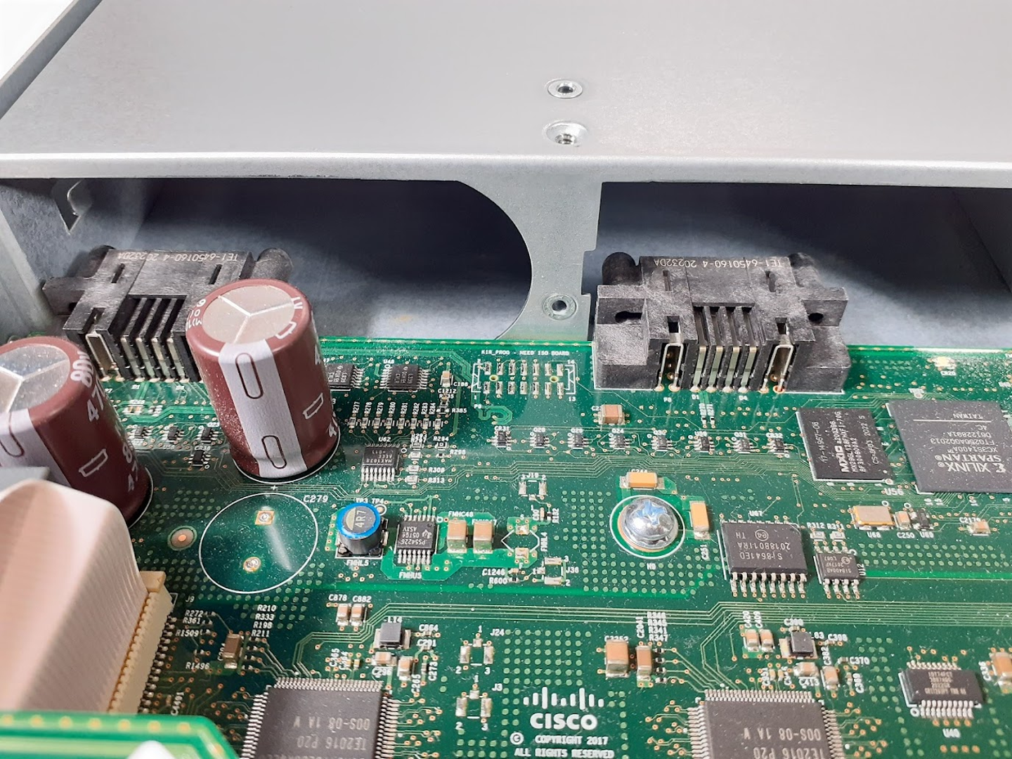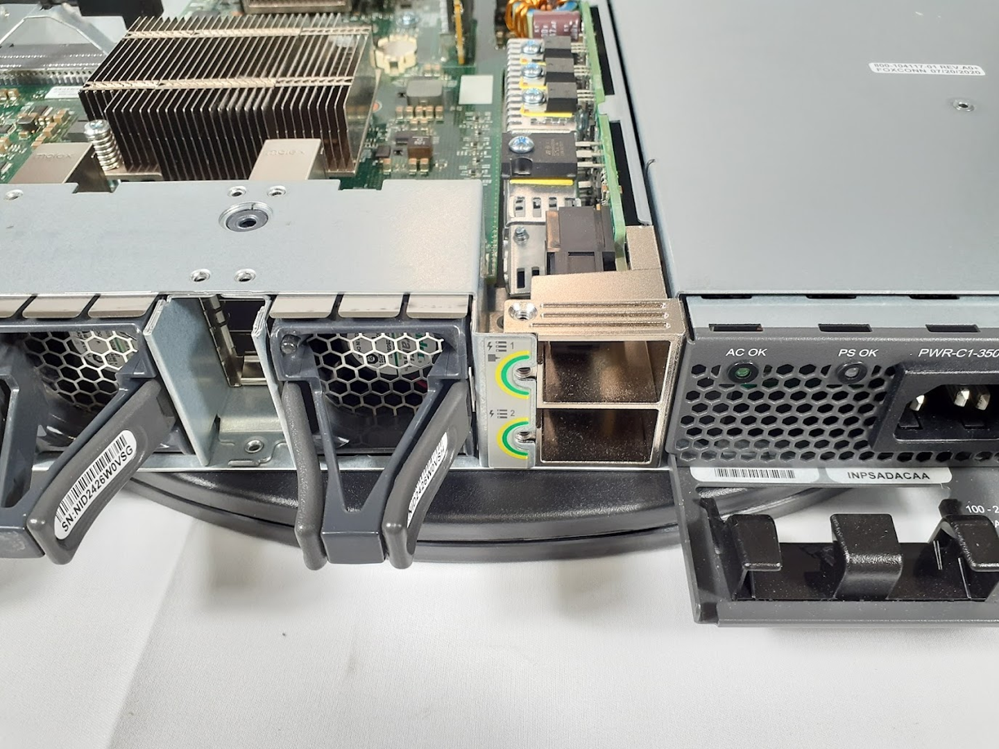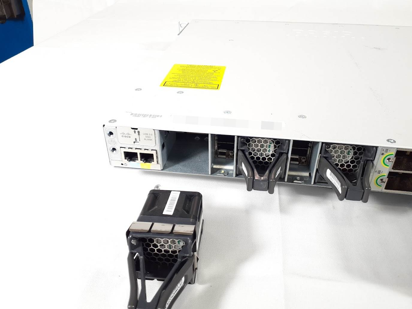 Network Moduleを搭載可能。 今回はC9300-NM-4M搭載。そして明るくしすぎた。右端も気持ち明るい。いや暗い。