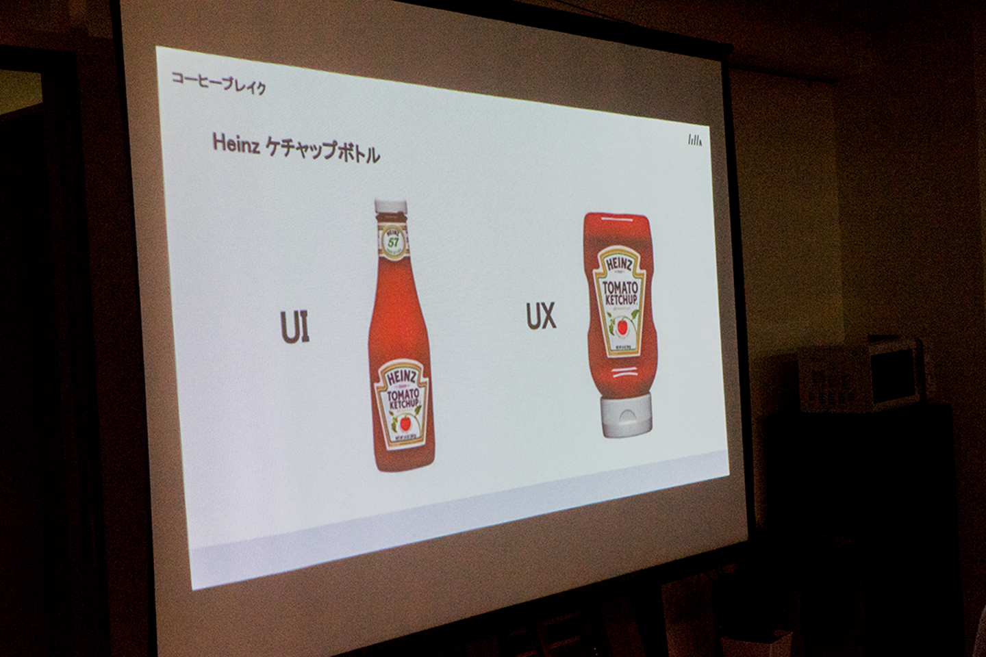 「UX」という言葉自体はよく聞くけれど、非デザイナーにとってはモヤっとしていて、いまいち腑に落ちない言葉。そんなわたしたちに対し、新さんは具体例を見せながらわかりやすく説明してくれました。