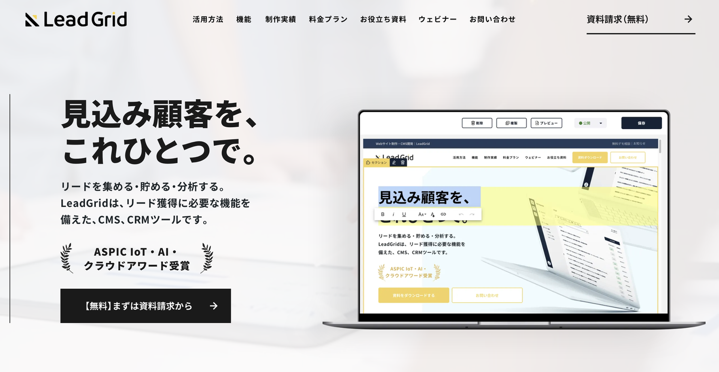 またDXコンサルティング事業の一つとして、『LeadGrid』というSaaS型(インターネット経由で利用できるサービス)の自社サービスも展開しています。LeadGridは、自由度が高く誰でも簡単に利用できる、リード(見込み客)獲得に特化したWebサイト運営をできるツールです。