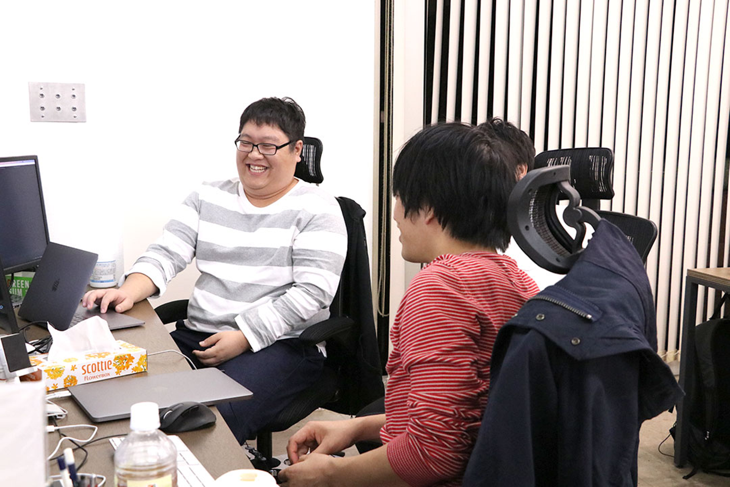 吸収できそうなものは、貪欲に求めて行こうと思っています。また、スキルアップを目的に転職したので、わからないことがあれば積極的に仲間に助けを求めるようにもしています。特に隣に座っているバックエンドエンジニアの土屋さんとは、最新情報を共有しあったり、基本的なところを教えてもらったりしています。彼は26歳で僕よりも若いんですけど、本当に頼れる存在なんです。