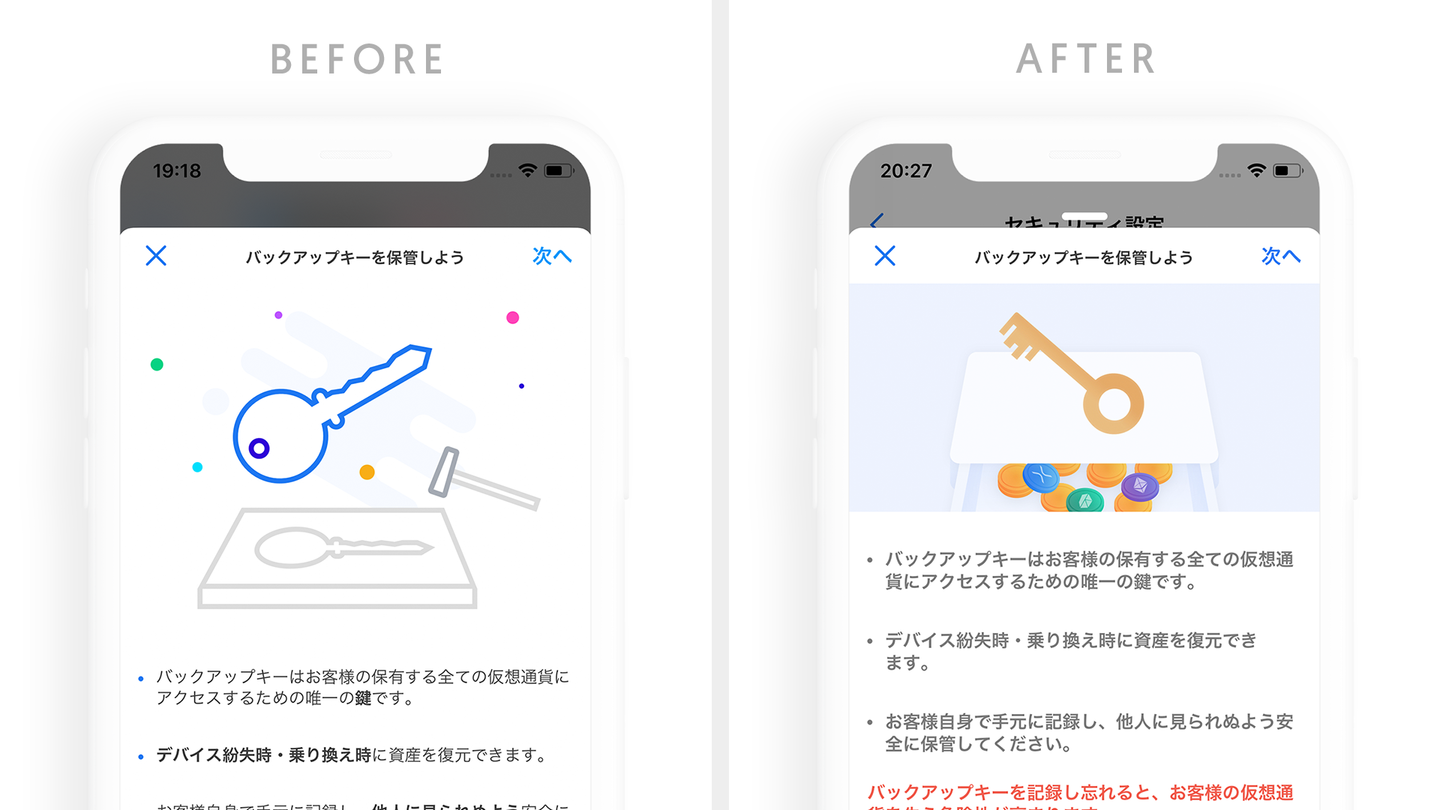 当たり前のことではありますが、多くのユーザの皆様にとって、仮想通貨は大切な資産です。そのため、管理のためのツールには「安全性」と同じだけ「安心感」が問われます。気軽で使いやすいことは機能として担保すべき前提であって、意匠で表現すべきものではありません。