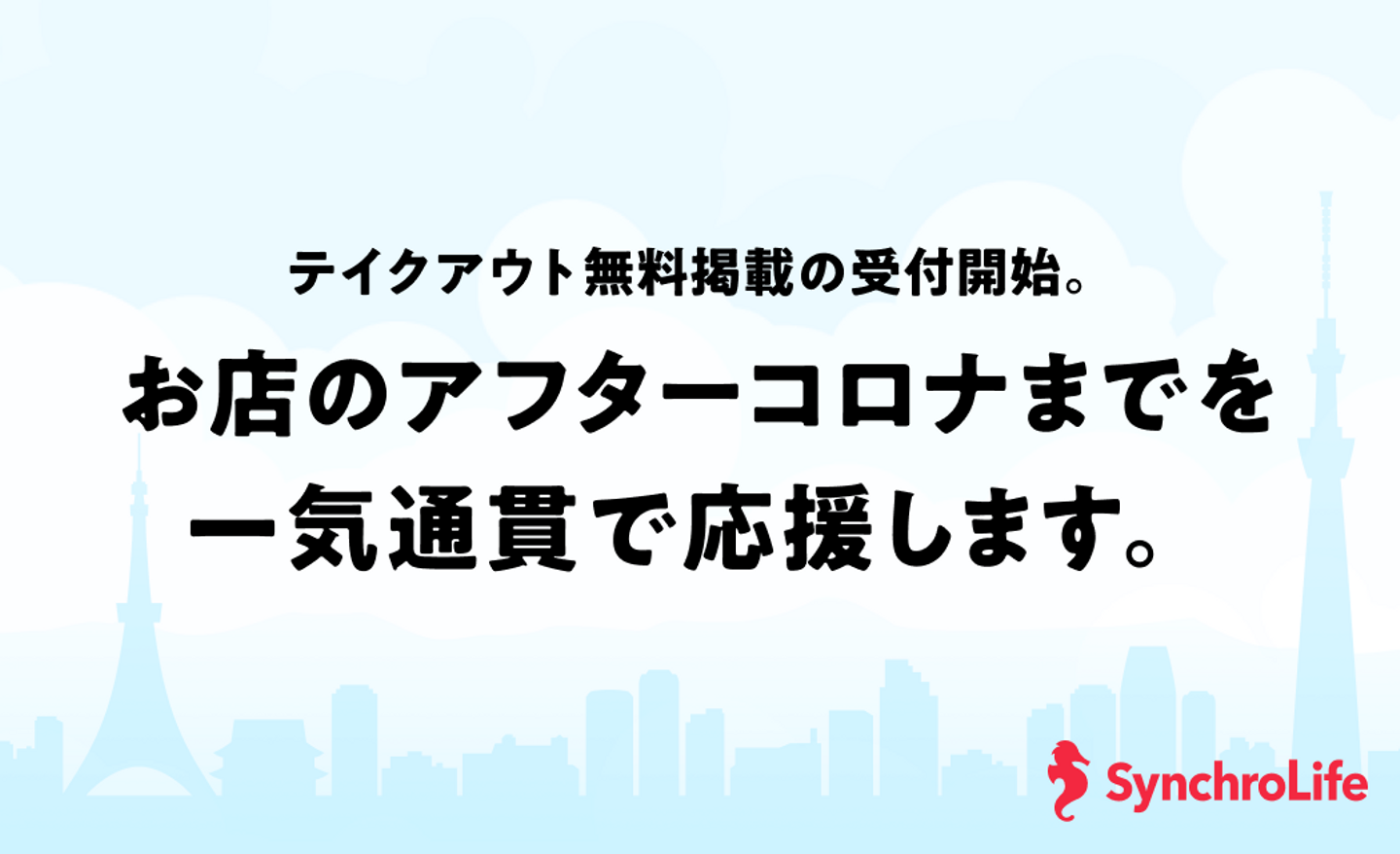 新型コロナウイルスによる影響は、飲食業界にとって大きく、長期に渡る戦いとなると考えています。私たちはシンクロライフを通して、中期的に飲食店の力になるための必要なサービスは何かを最重要課題として考えました。このサービスを通してシンクロライフはユーザーと共に飲食店を応援し、復興支援はもちろん、さらなる飲食業界の発展につながる新しいマーケティング価値を提供し続けて行きたいと思っています。