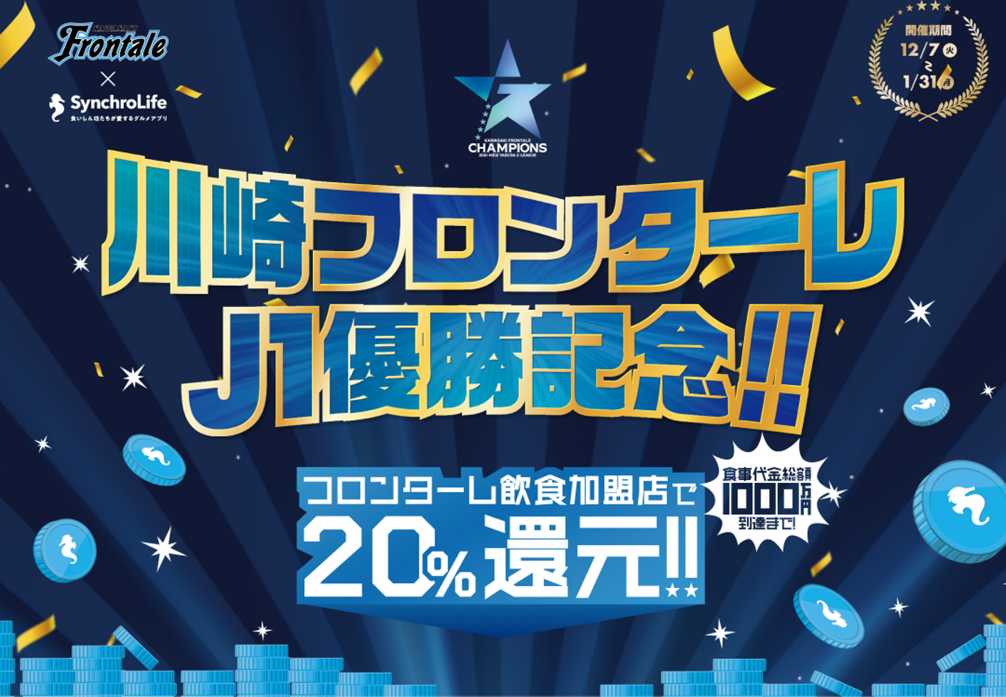 優勝還元セール特設サイト:https://c.synchrolife.io/campaign/202112_frontale