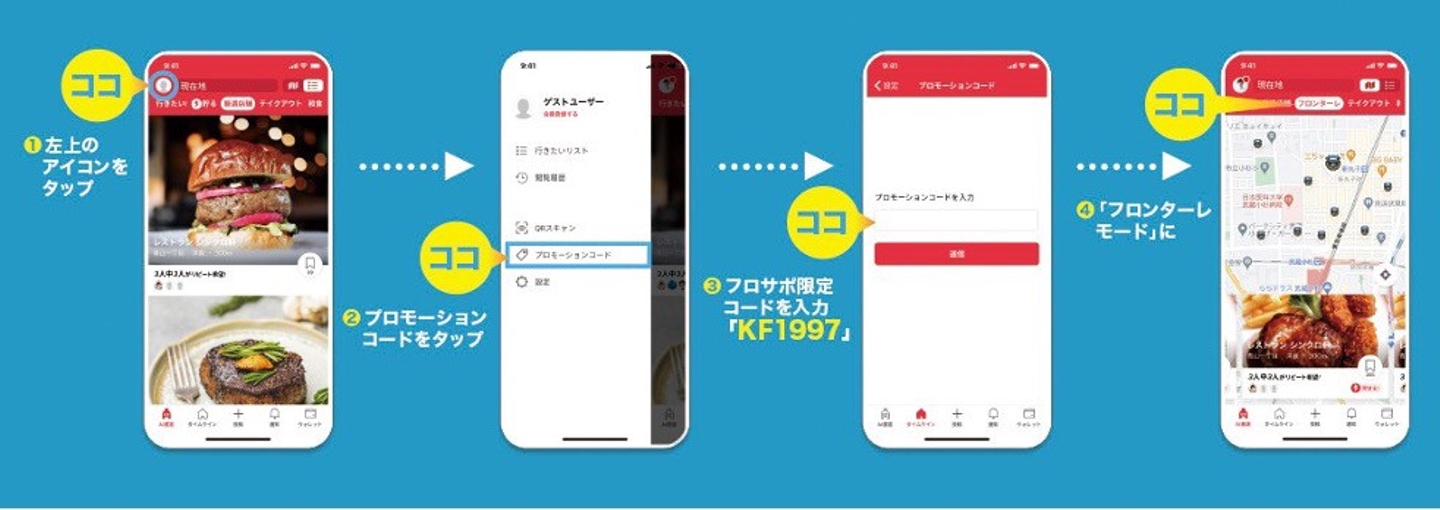 グルメアプリ「シンクロライフ」をインストールし、コード入力を行い川崎フロンターレモードにするだけで、本プロジェクトに参加可能となります。