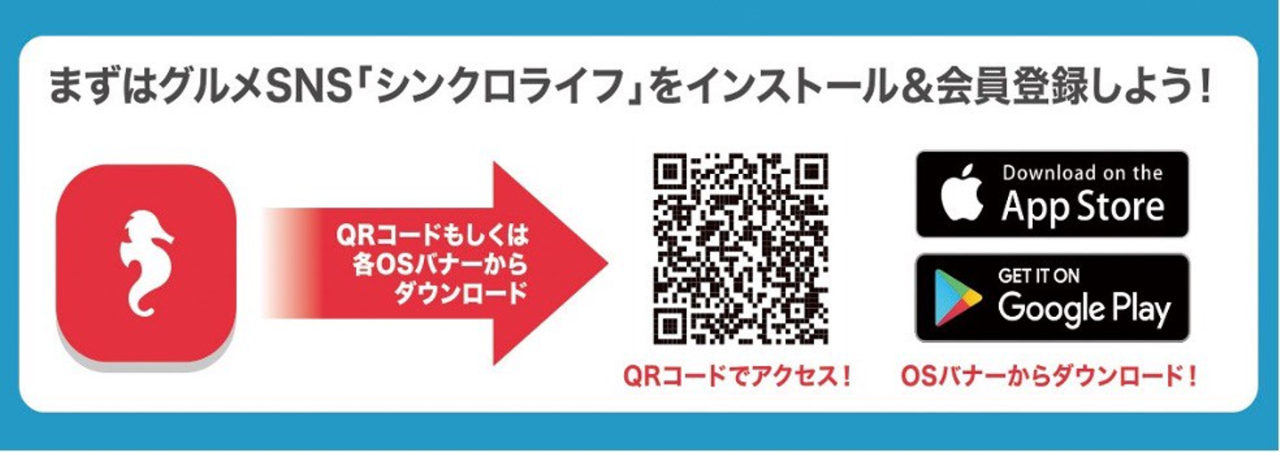 シンクロライフは、食いしん坊たちが本当に美味しいお店を炙り出す、世界基準のグルメSNSです。AIが口コミを分析して個人の趣味嗜好に合ったお店をレコメンドすることで、ユーザーは「口コミへの不審感」と「検索の煩雑さ」から解放される新しい飲食店開拓サービスです。現在31万件の食レビューと12万件以上の飲食店が掲載されています。
