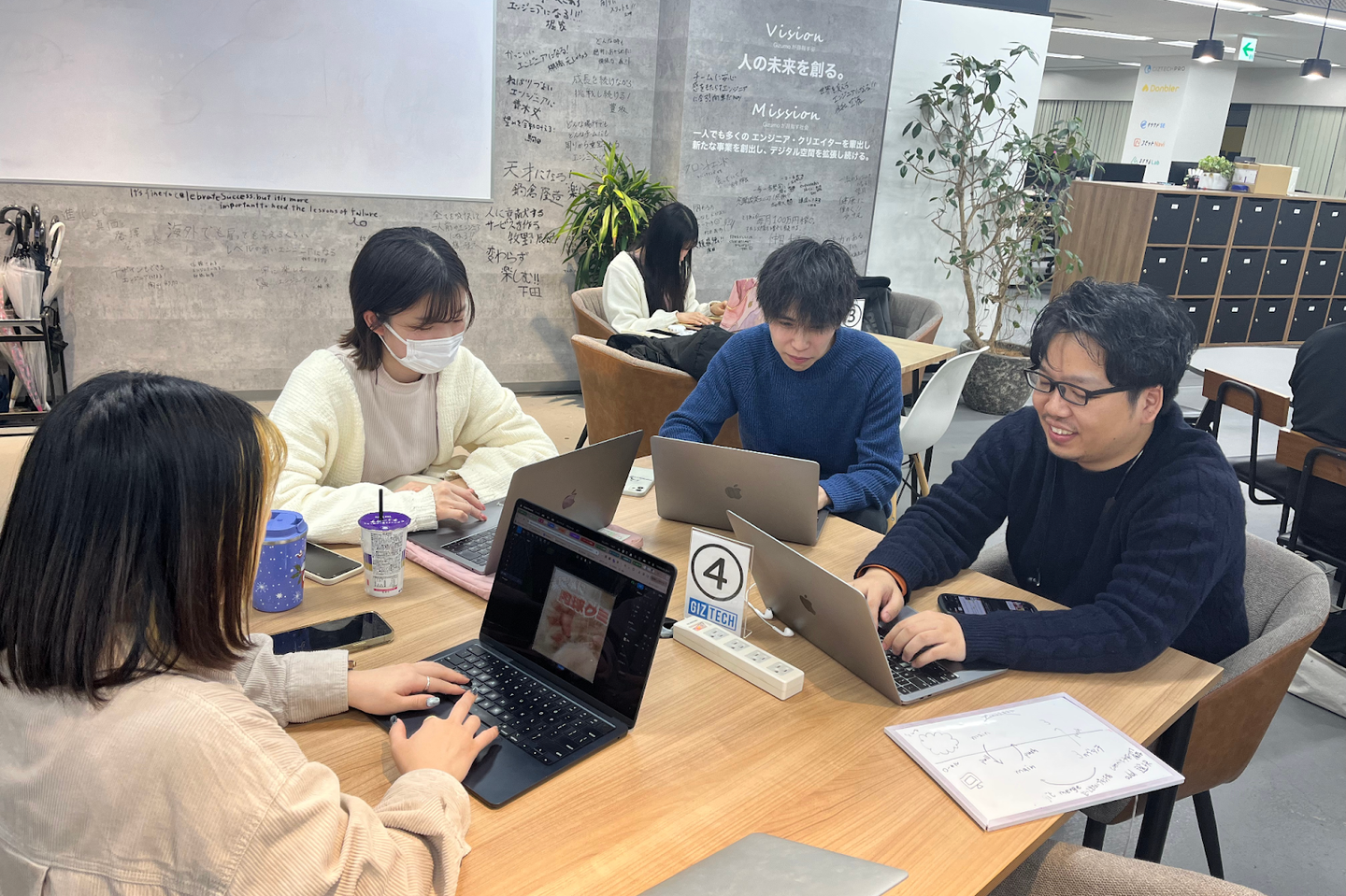 遠藤:私は将来Webデザイナーとして働きたいと考えていて、もともと独学でWebデザインを勉強していたんです。サイトの模写や自分でサイトをデザインする中で、制作物を誰かに見てもらったり意見をもらえる場がほしいと思うようになりました。そんなときに同じくWebデザイナーを目指している同僚と飲みに行く機会があって、「デザインについてもっと社内で意見交換できる場がほしいよね」という話をして、ノリでサークルを立ち上げることになりました(笑)