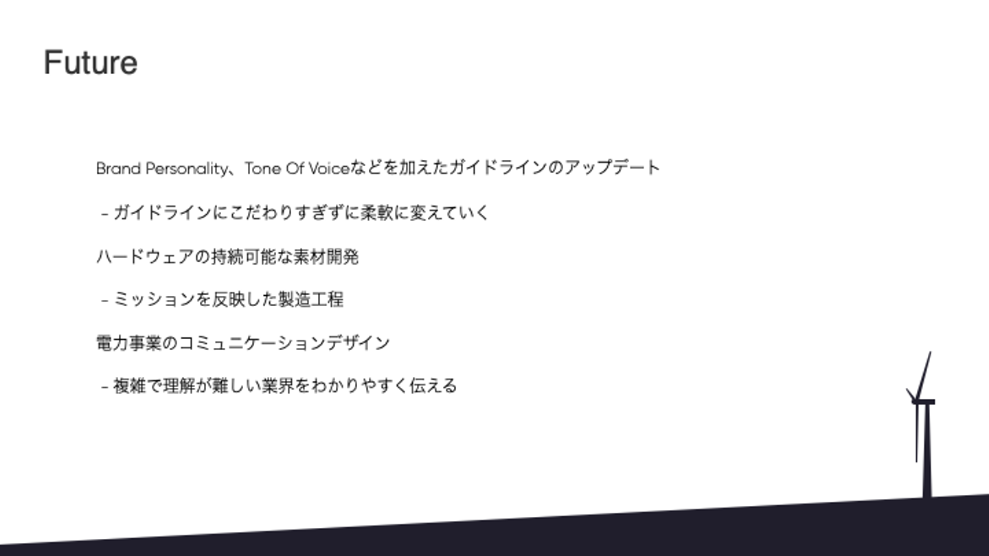 増田さん:ガイドラインやポリシーを緻密に作り上げるということがまずはとても重要だと考えています。その前程が定まっていないとバラバラのデザインをしてしまうためです。逆を言うとそこがしっかりできているとその後の浸透はし易いと思います。