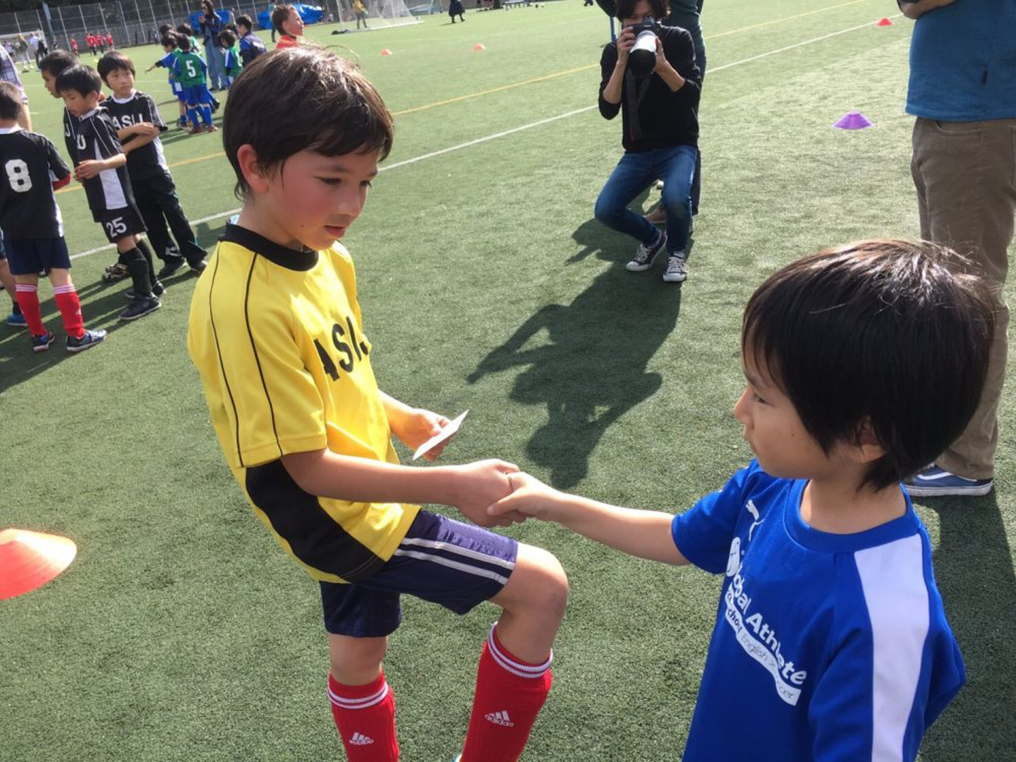 だからこそ、グローバルアスリート英語サッカースクールでは、子ども達に「サッカー」を好きにさせ、興味を持たせることに重きを置いています。子どもが本当に好きになれば、サッカーの練習を自らするようになるし、上手くなろうと努力するようになろうとします。なので、私たち大人(コーチ)の役目はまず「サッカーを好きにさせること」「子ども達の個性や特徴を伸ばすこと」そして、「サッカーがもっと上手くなりたいと自分自身で考えさせること」だと思っています。そこで悩んだり、もっと上手くなりたいから教えて欲しいという時に、技術などのアドバイスをしてあげることが大切だと思っています。