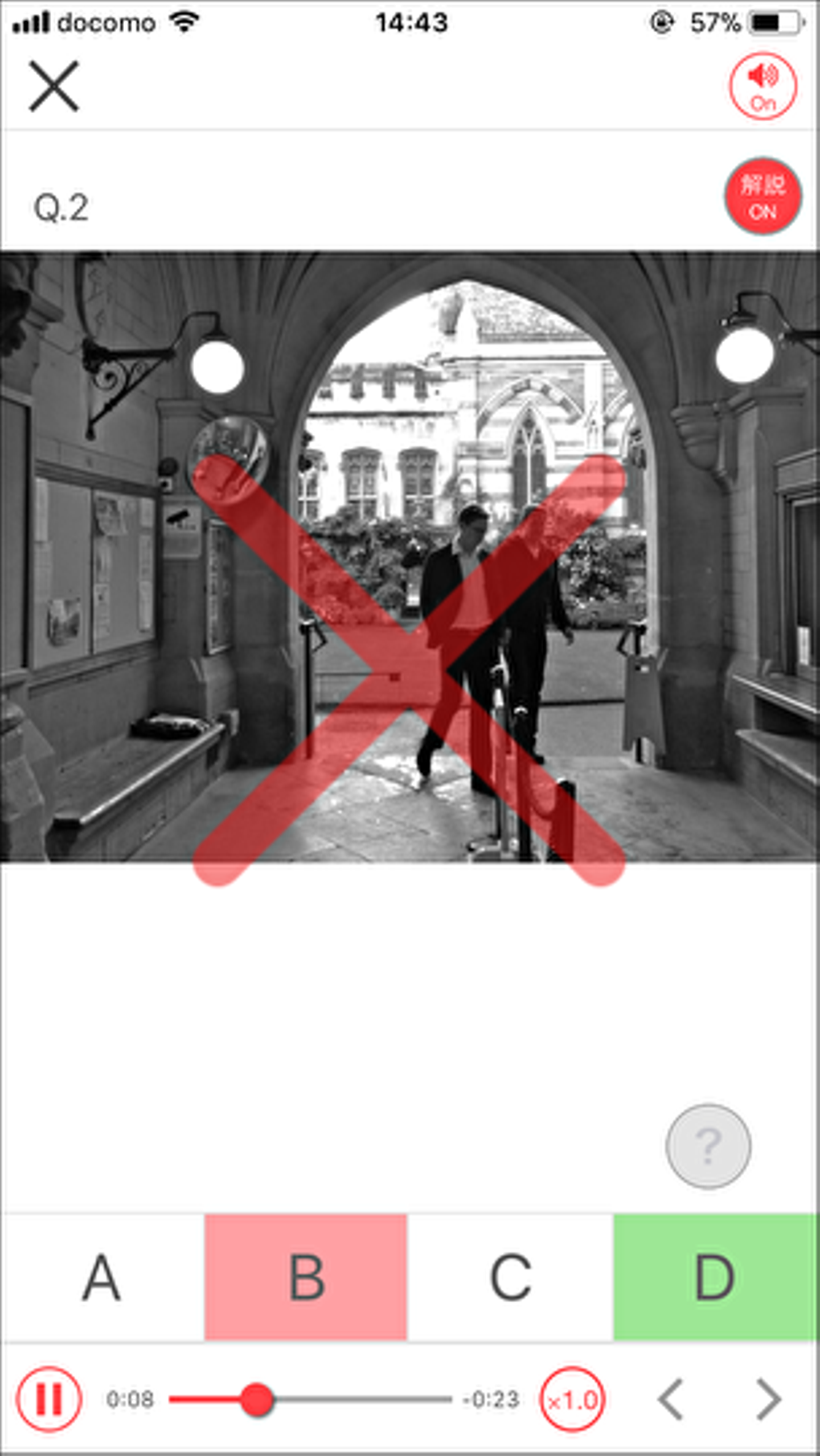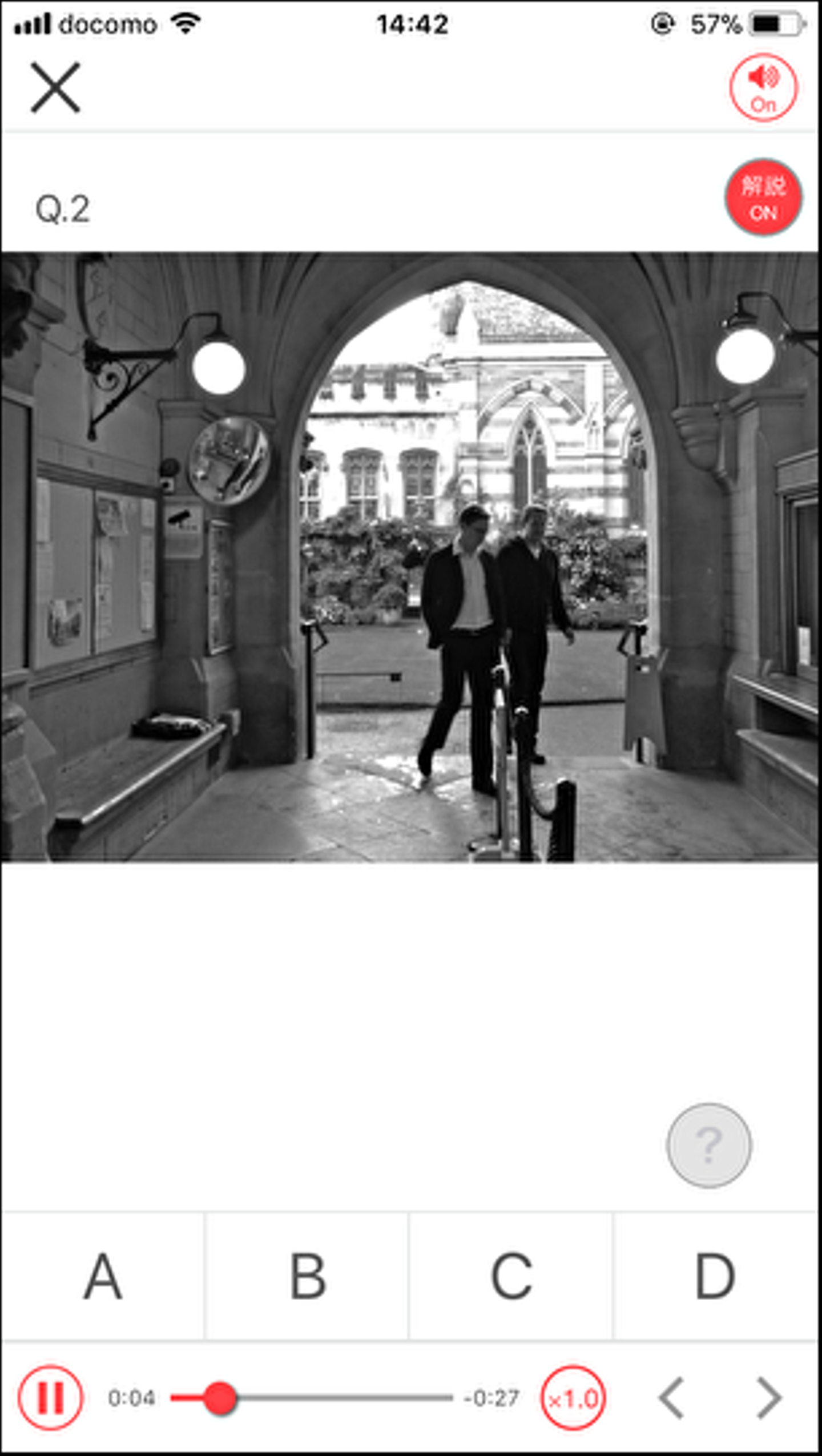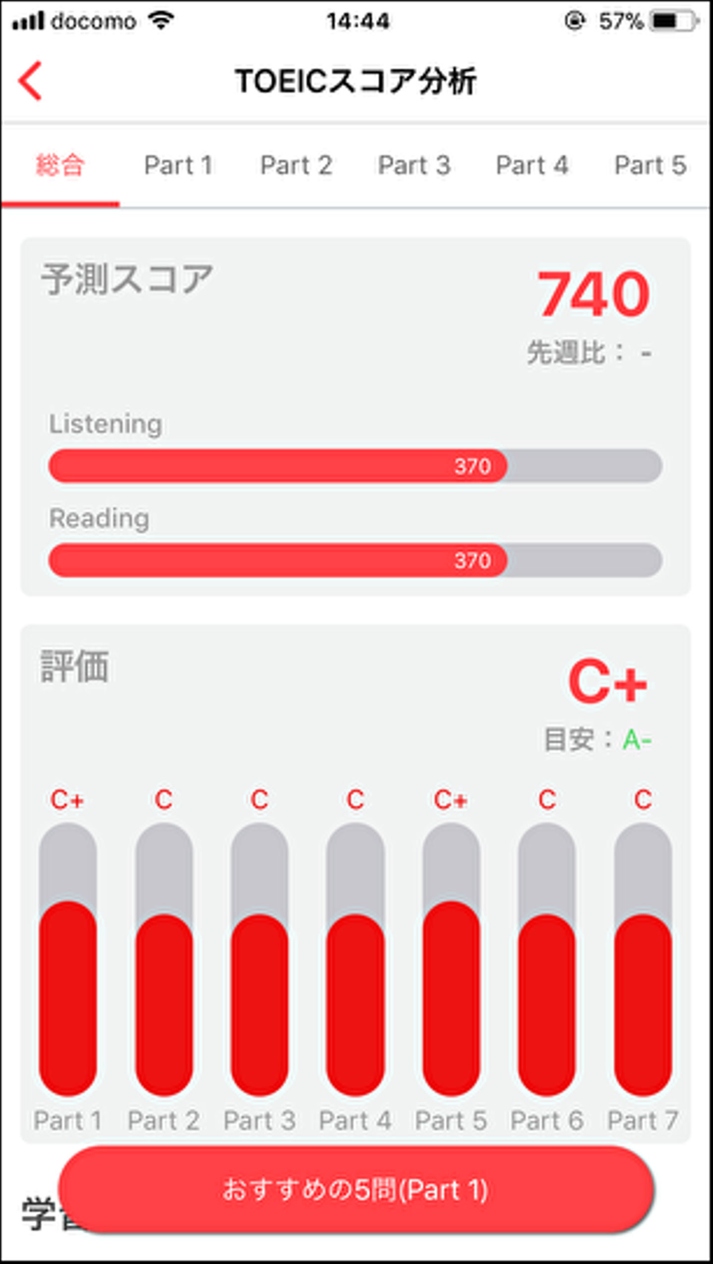 出された予想問題に答えることで、現在の自分のTOEICの点数をAIが予想してくれる