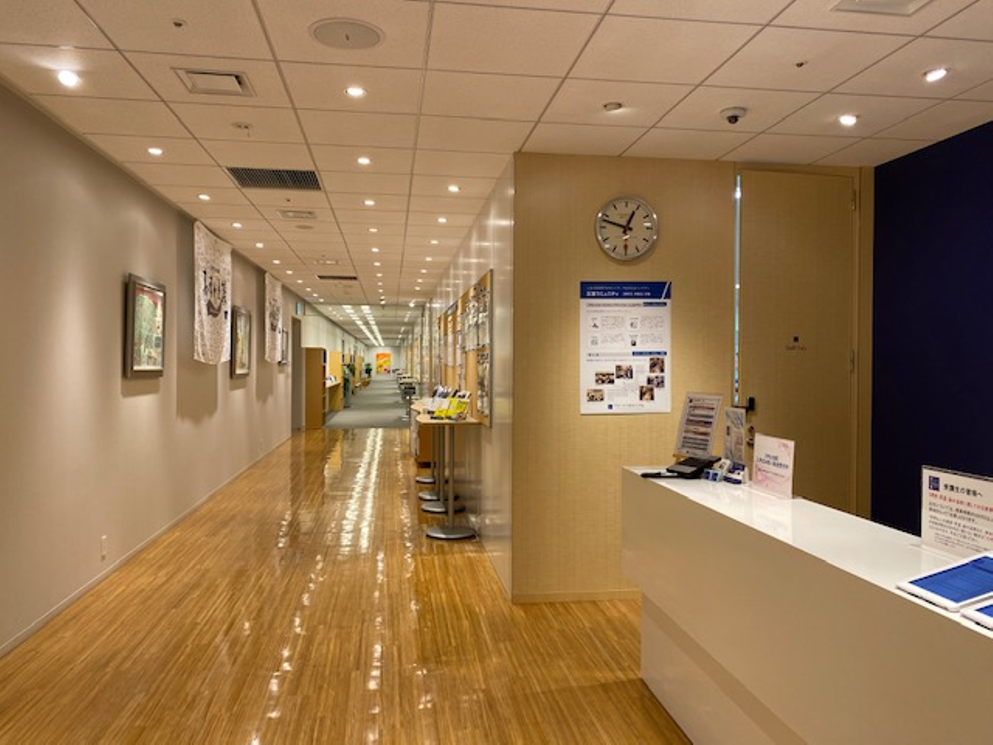 (大阪校の様子。新大阪駅の真上にあるため、駅のホームに沿って廊下が一直線に伸びています。)