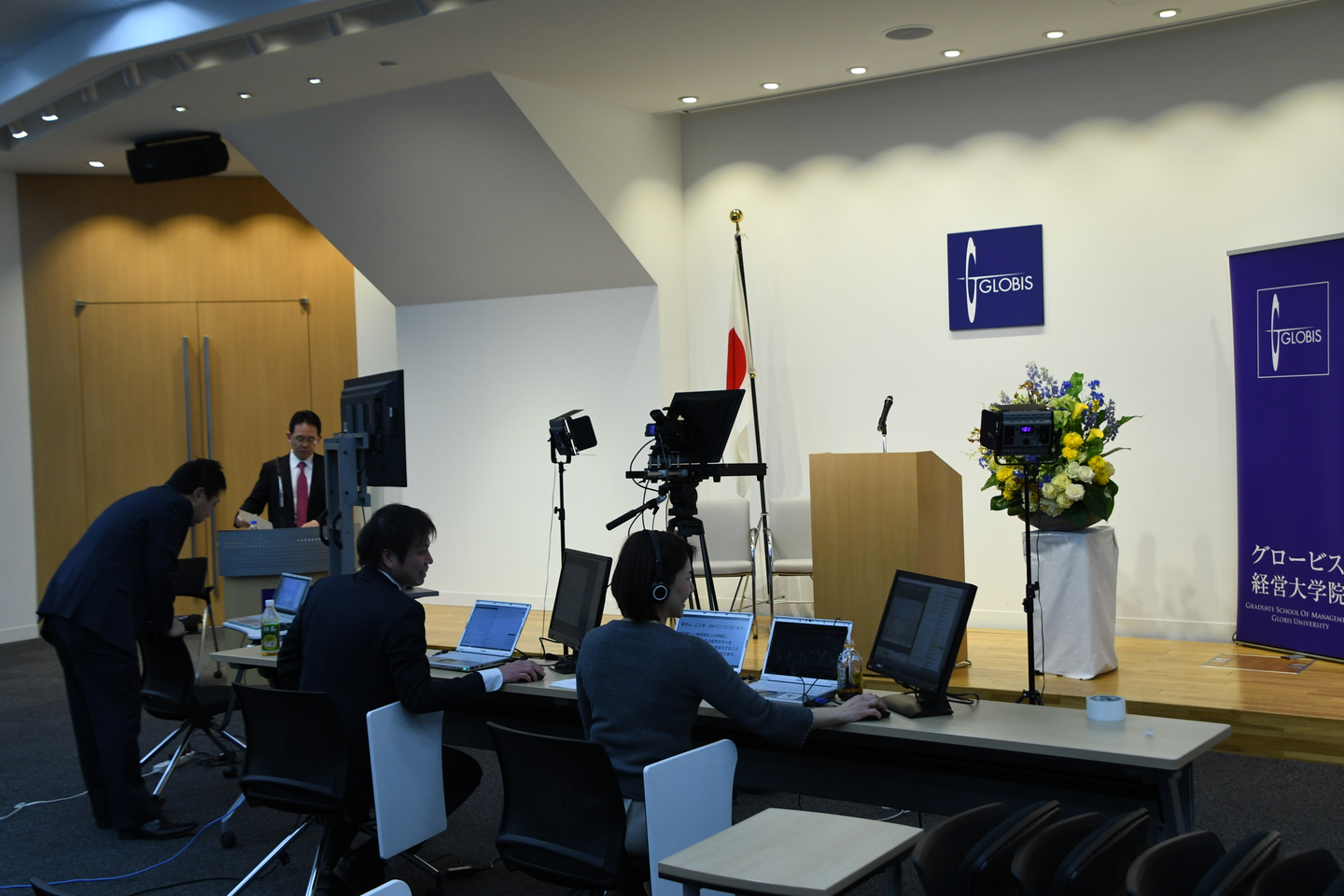 式典中継会場はまるでテレビ局のスタジオの様子さながら📺。