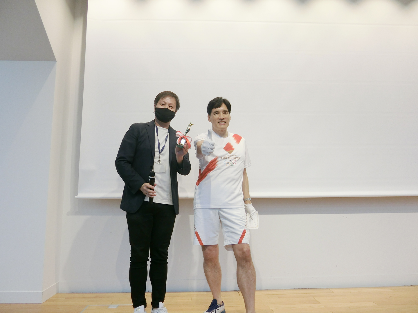 堀は先日オリンピックの聖火ランナーを務めたこともあり、なんと聖火ランナーユニフォームでの登場でした!