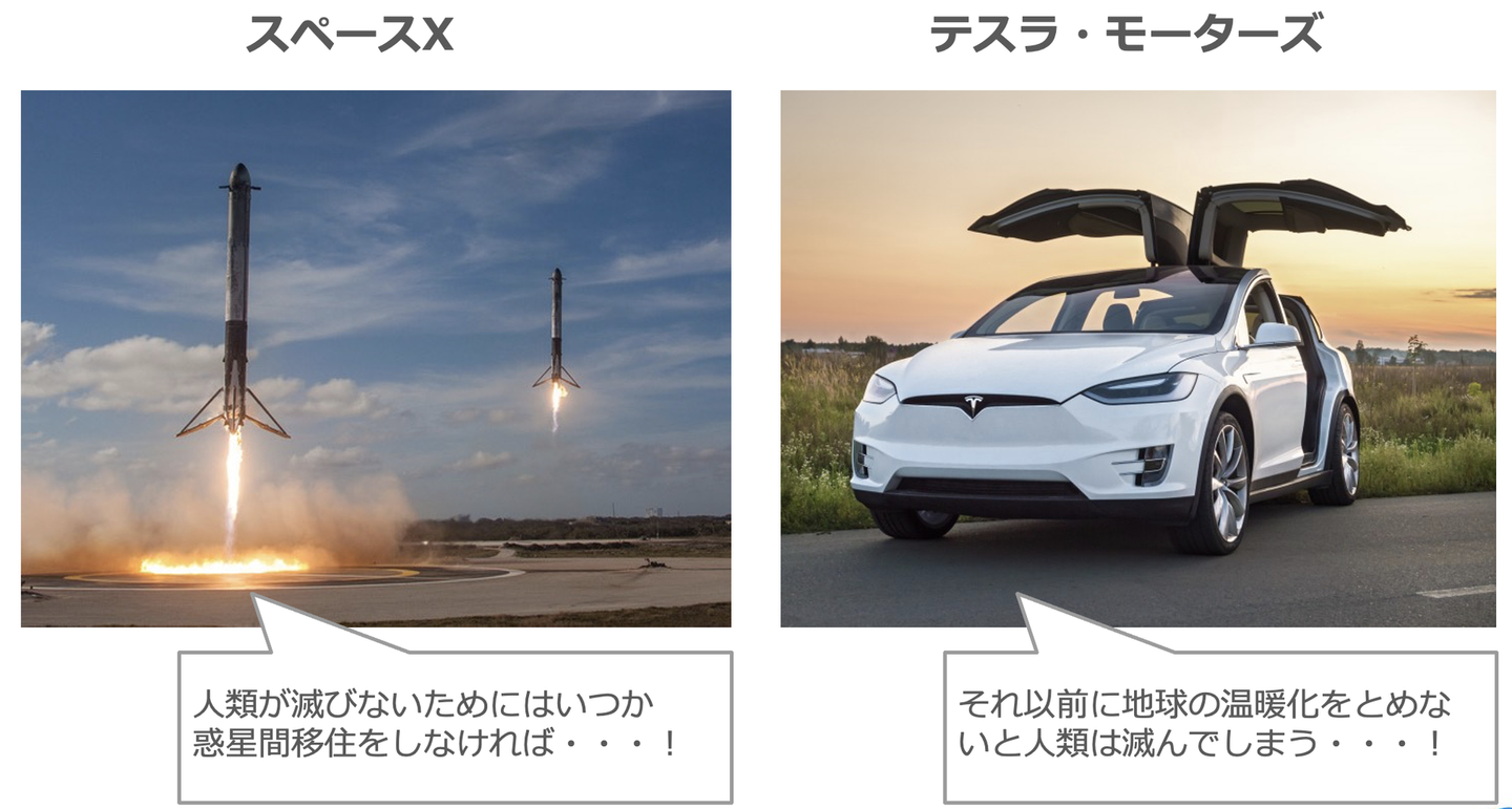 など、自分がこれをやらなければ、人類は前に進めない! だから今はつらくてもがんばるんだ・・・! こういうイーロン・マスクさん個人の強い思いが、会社のビジョンとして社員やステイクホルダーに共有されたからこそ、テスラ社やスペースX社は社員が一丸となれました。