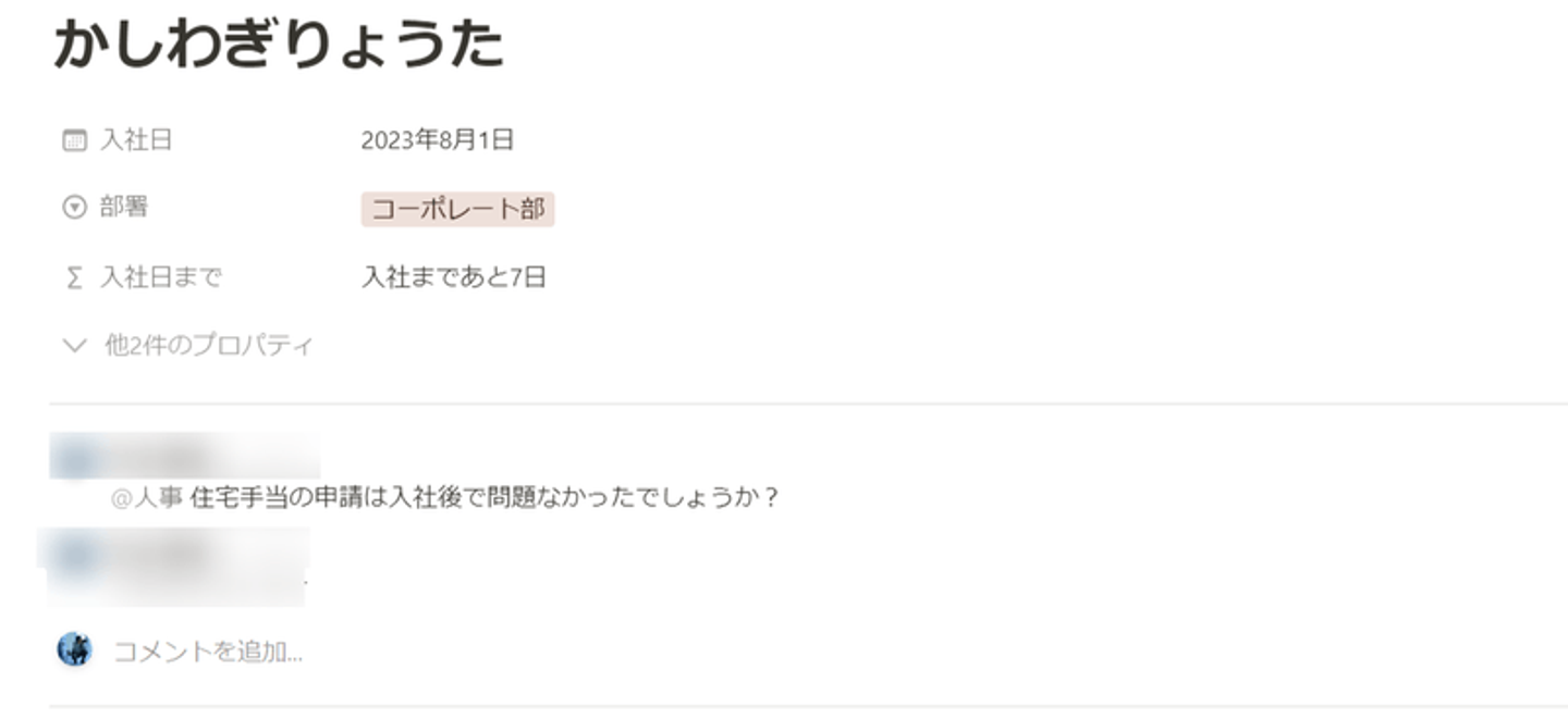Notionのコメント機能を使うことによって、ライトに質問をしてもらうことができます。
