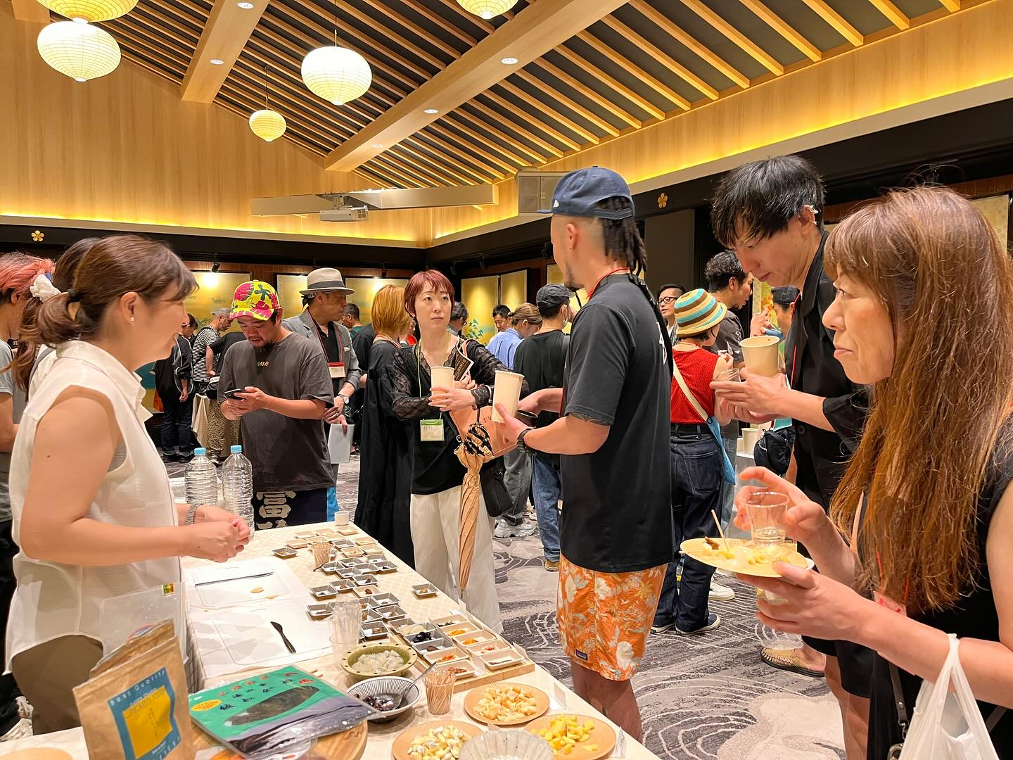 試飲会後は恒例の懇親会です。鳥取県の代表銘柄「日置桜」を醸す山根さんは、最年長ながらみんなにお酌をして回られていました。その姿は、次の世代、また次の世代へと酒文化を継承していく鳥取の酒造りの姿を象徴しているようでした。