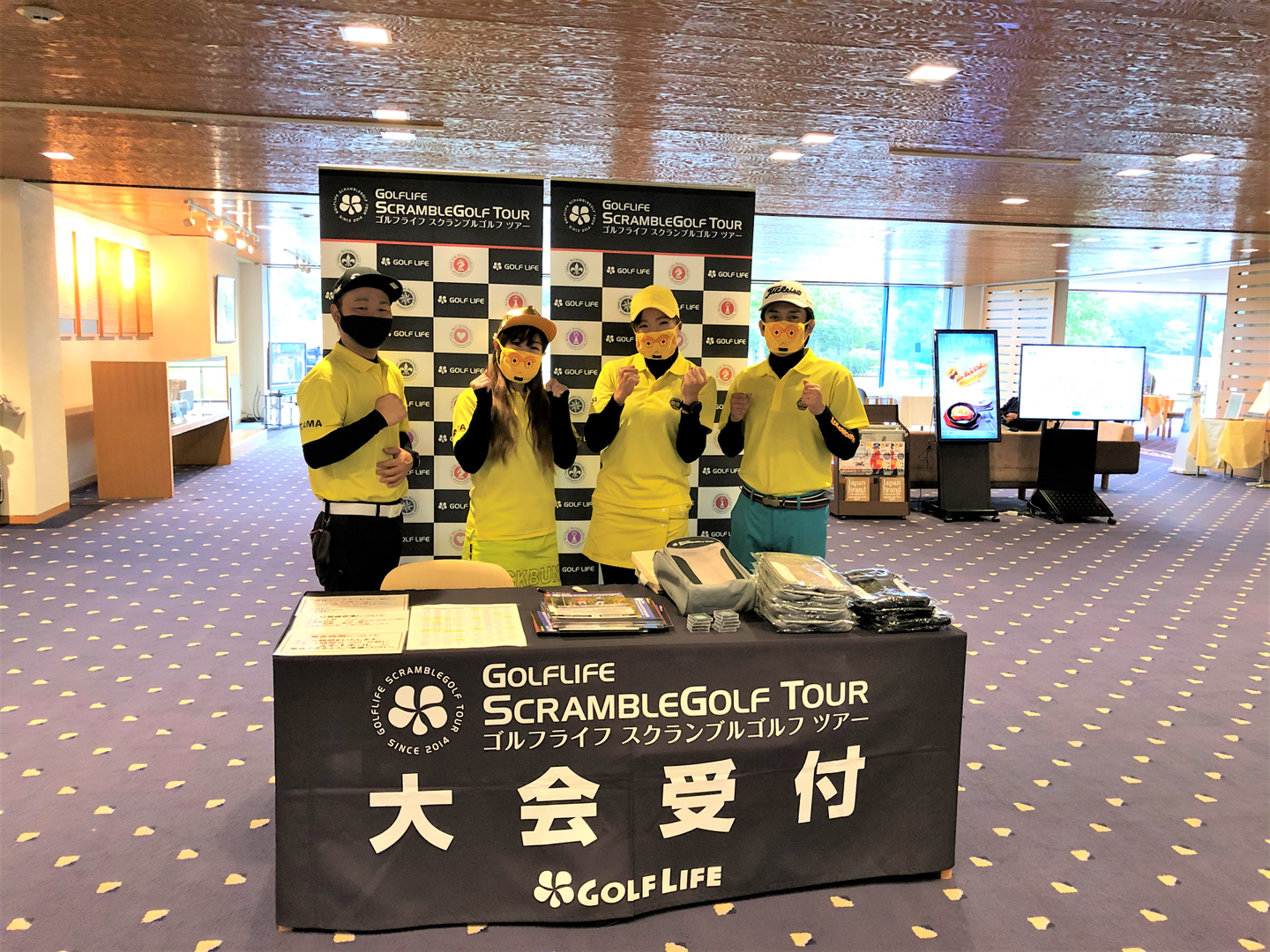 受付気分で記念撮影📸大会に向けての気合は十分です!