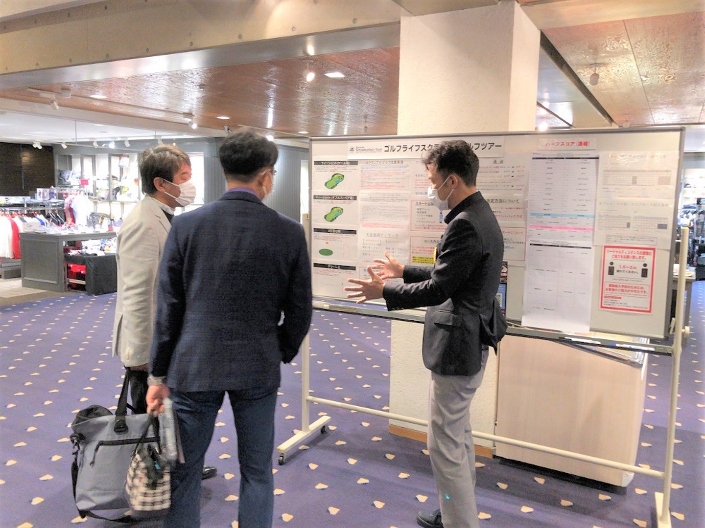 大会当日の受付資料のチェックや、お客様がコースに出られる前にルール説明をするための資料を準備します。