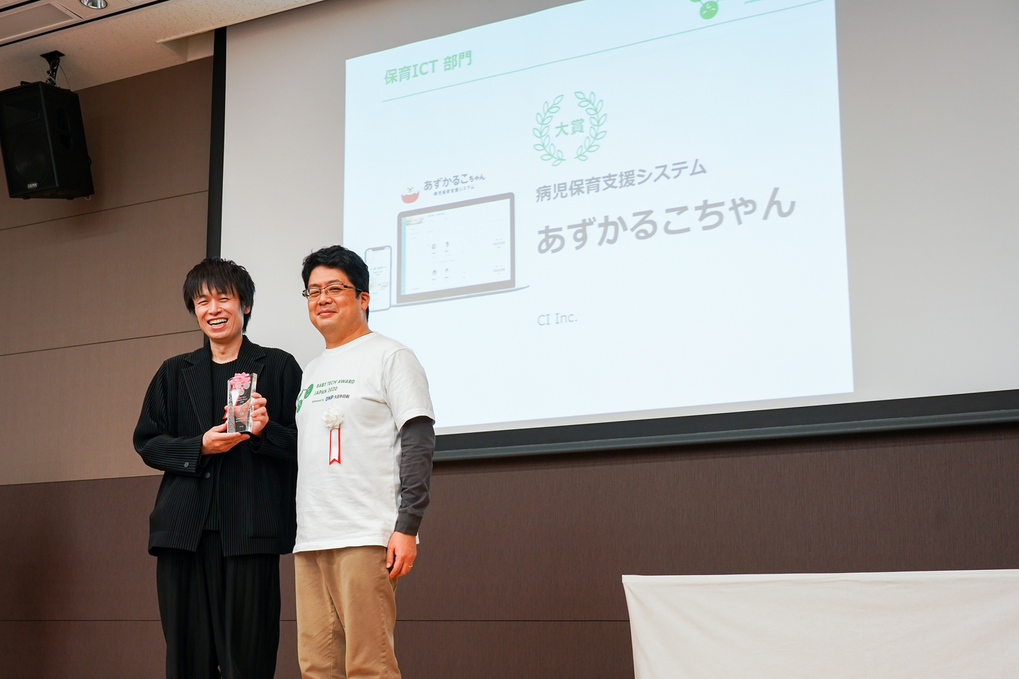 今回は、子ども支援に関わるすべての人が励まされる賞を設定していただきありがとうございます。また、「BabyTech® Award Japan 2020 powered by DNP 大日本印刷」保育ICT部門にて「あずかるこちゃん」が大賞という評価をいただき、とても光栄に思っております。ありがとうございました。