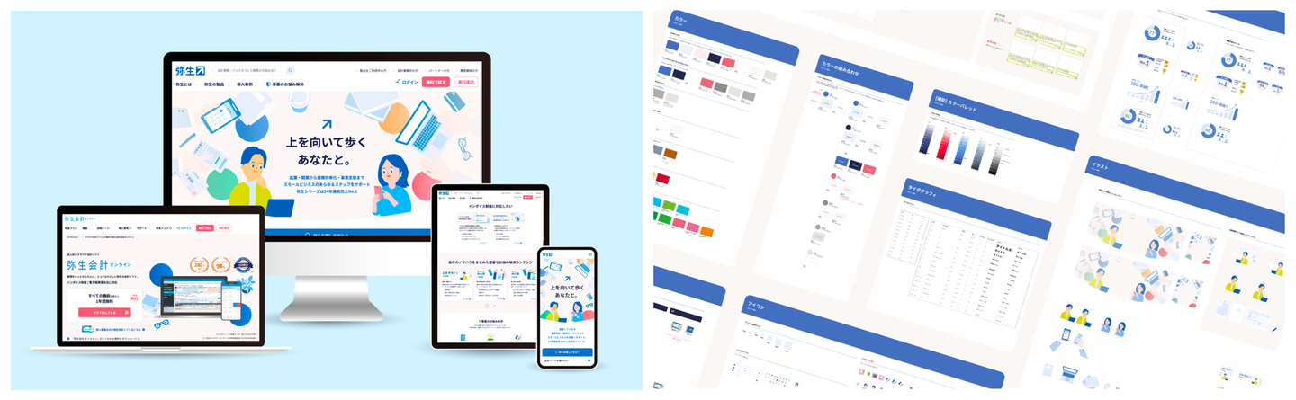 Webサイトでは課題を棚卸ししながらどんなターゲットにどのように伝えるかなど、足元の問題も解決しながらデザイン全体の統一を図りました。弥生様社内の意思をワークショップを通して吸い上げつつ、市場への伝わり方を意識した、サービス全体を前進させる施策とデザインのバランスを重要視したプロジェクトでした。