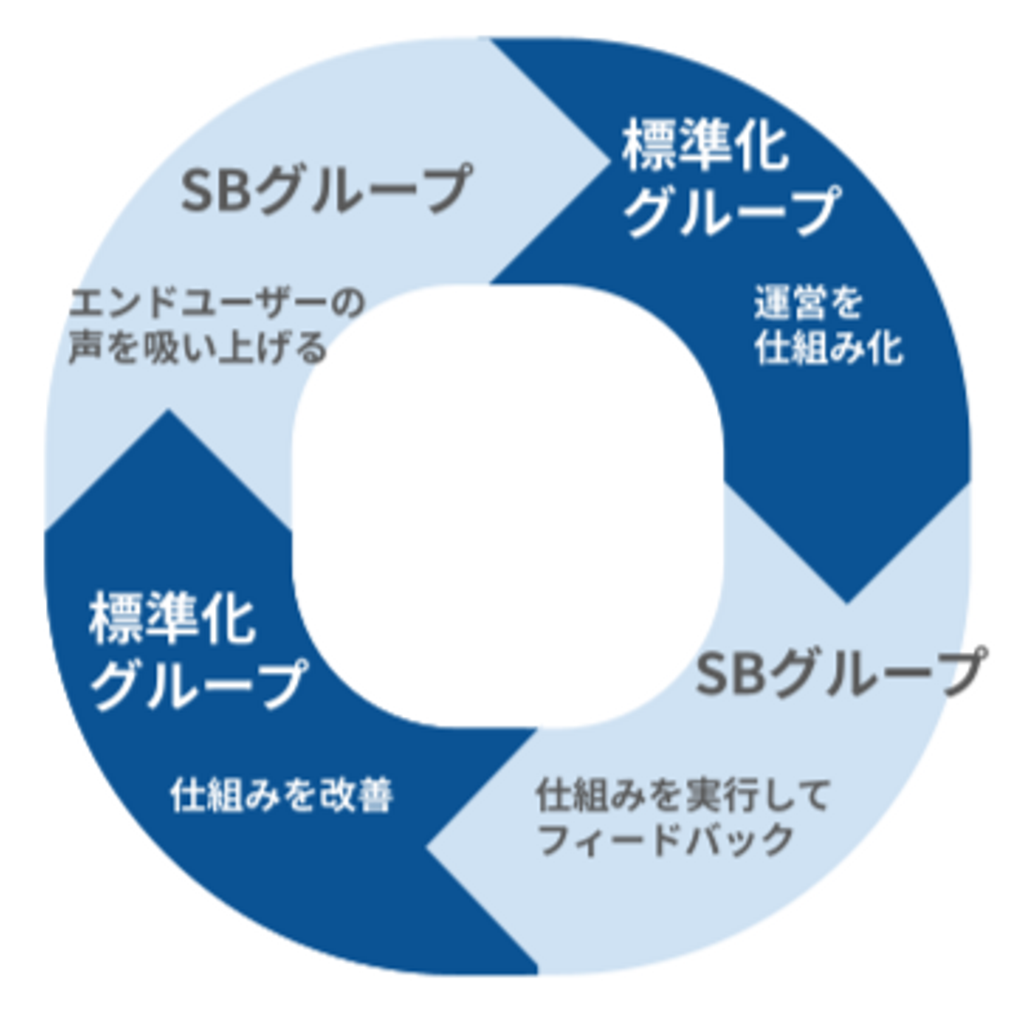 T.H:はい。私たちSBグループが現場目線での要望を吸い上げ、それを標準化グループがフォーマットに落とし込み、SBグループが実行して標準化グループにフィードバックを返す、という流れで日々連携しています。
