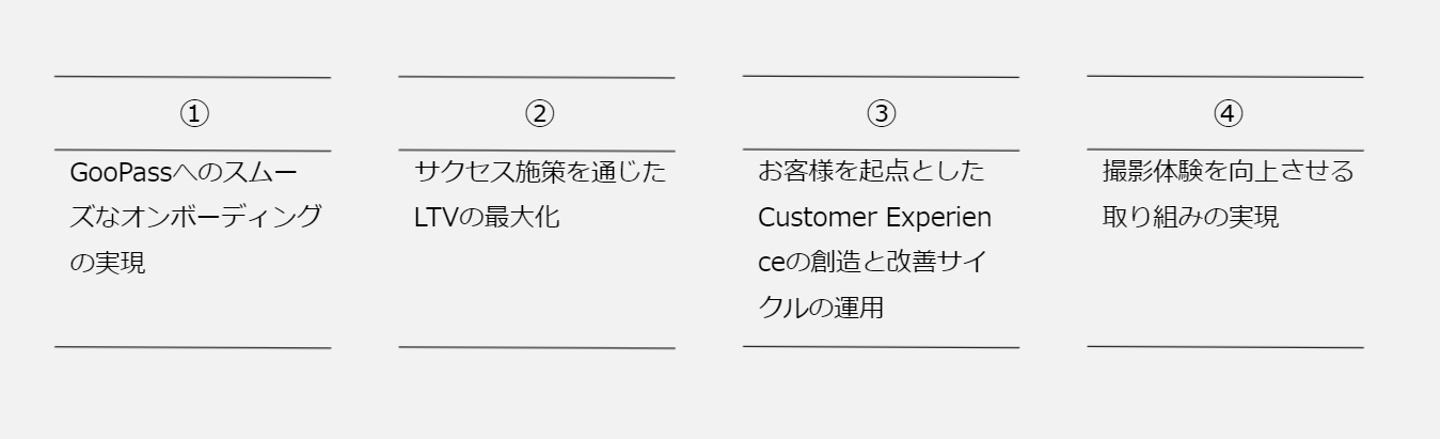 カメラブのサービス「GooPass」は、月定額でカメラをレンタルできるサブスクリプションサービスです。ユーザー体験を高めてもらうために、「カスタマーサクセス」として ”攻めの施策” を行っています。