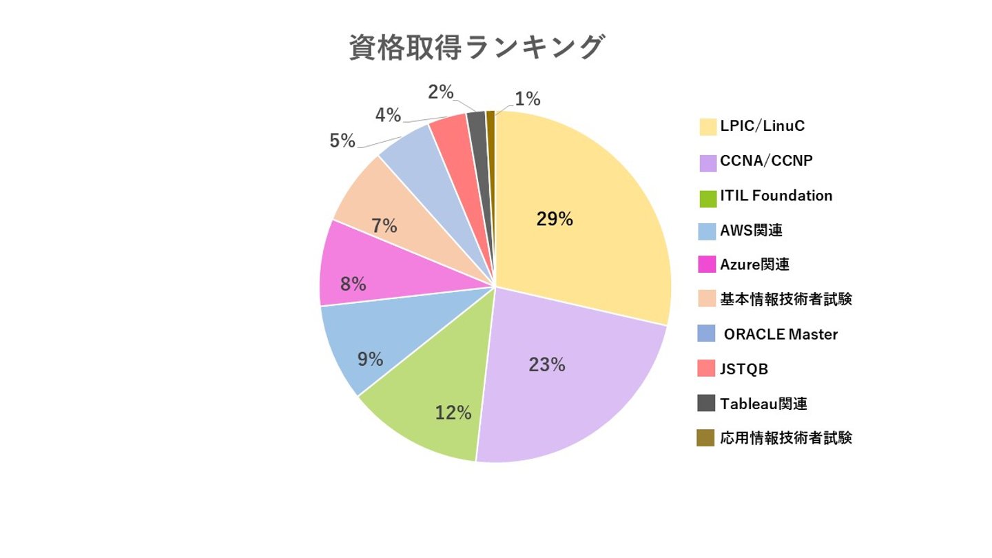 エンジニアの資格を調べた際に、これらの資格を目にした方もいらっしゃるのではないでしょうか?GOOYAでは、主にサーバやネットワーク関連の案件が多く、それに伴って社内勉強会でもインフラがテーマの物が毎月開催されております!資格取得ランキングにもGOOYA特有の色が感じられますね。
