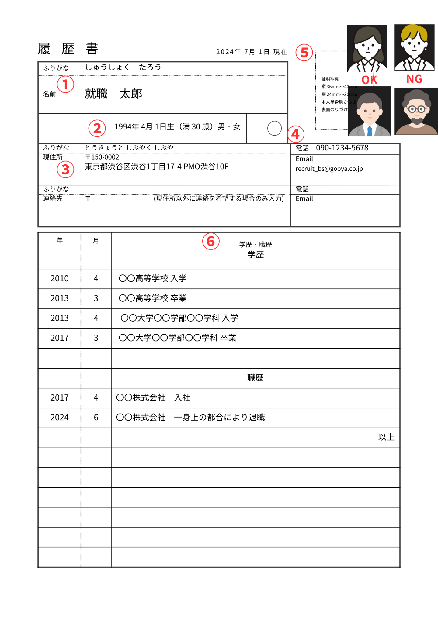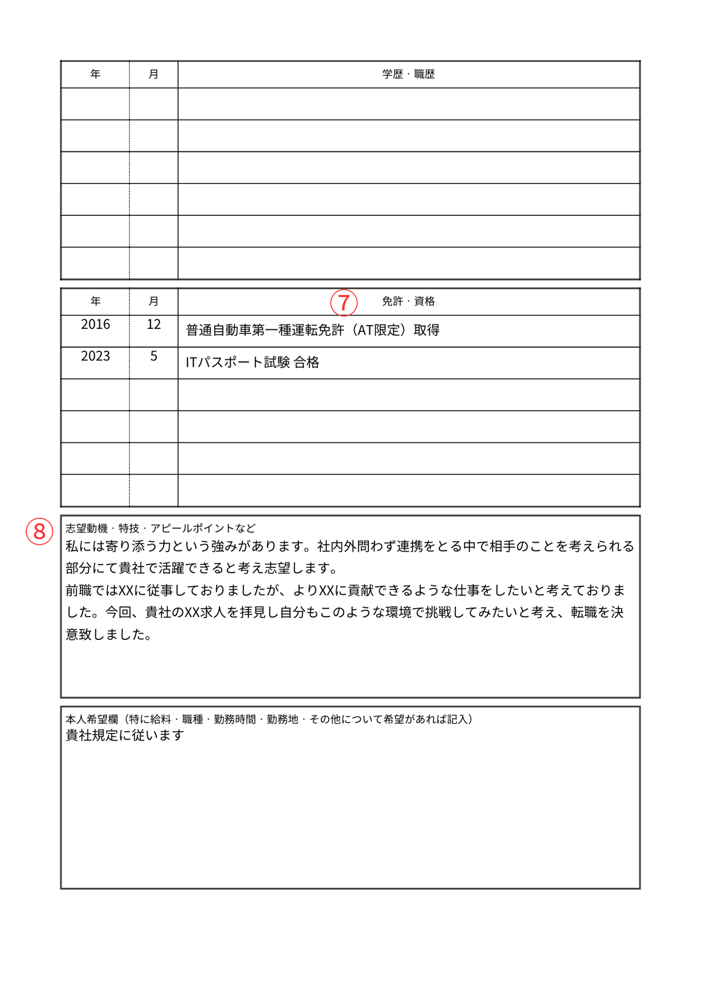 こちらも履歴書同様、ポイントは下記になります。