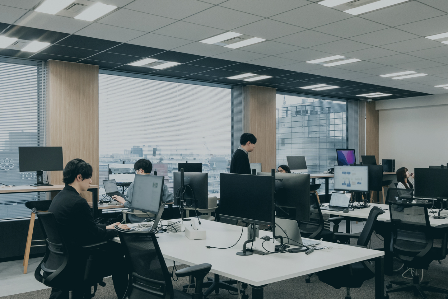 フロントエンドエンジニアのスタッフは、フロントエンドエンジニアだけで構成されるチームに所属します。毎日の朝礼や終礼で業務の状況を共有しており、困ったことがあればお互いに助け合える環境になっています。