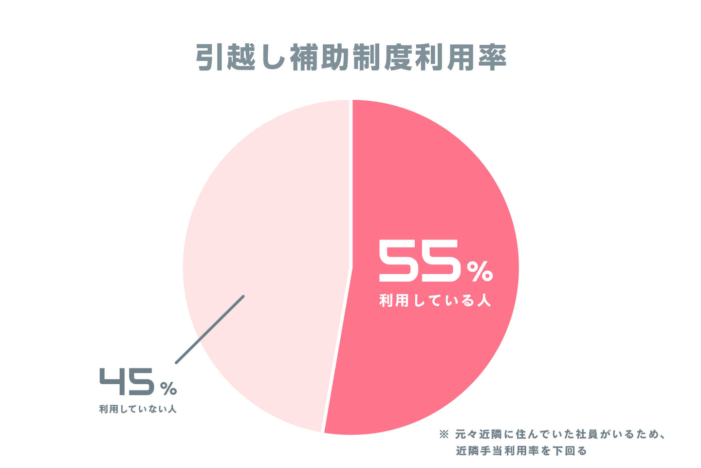 就業にあたり、オフィスの徒歩圏内(1.8km以内)に転居する社員に対して、50万円(一律)の引っ越し費用を補助しています。