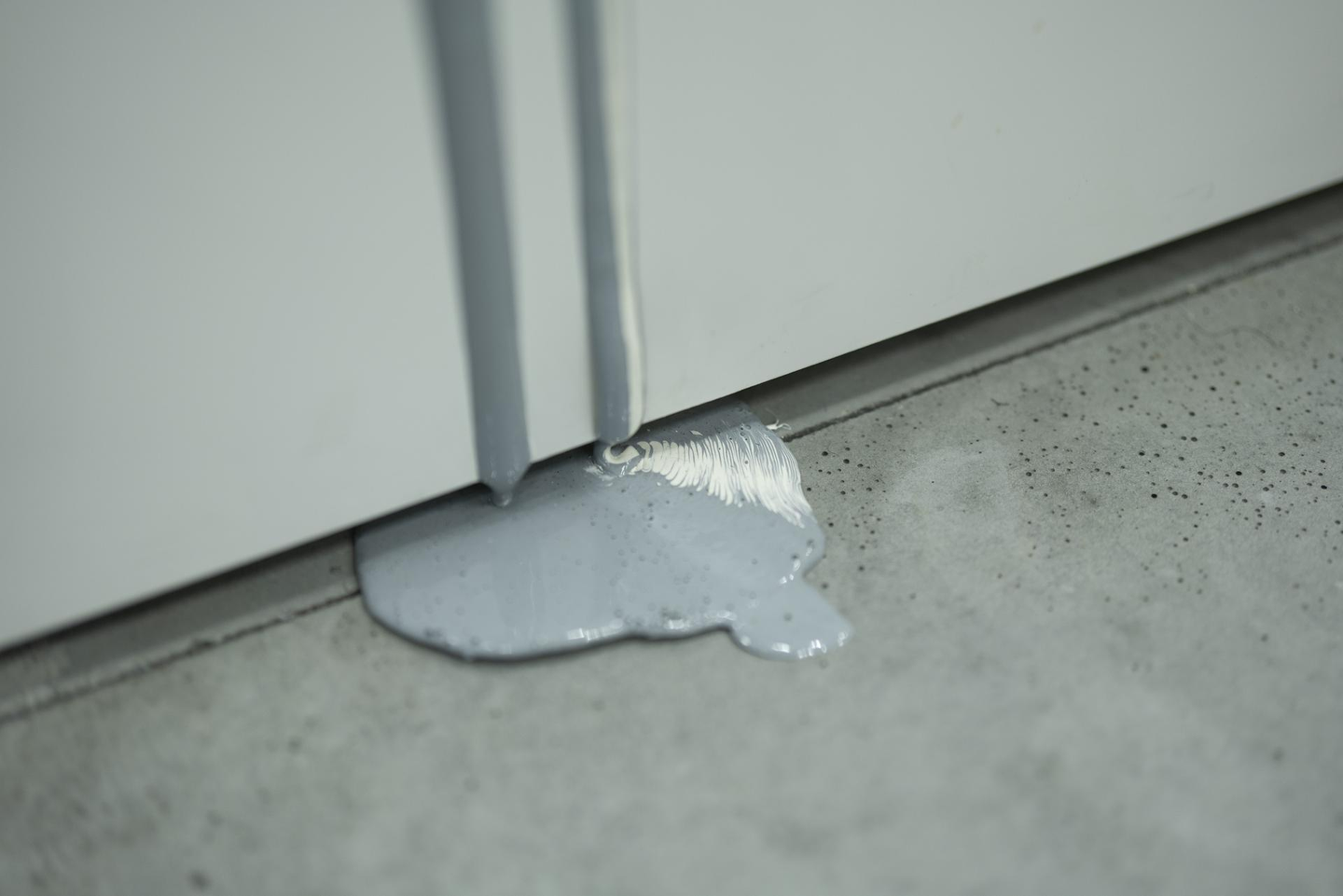 ▲動かす必要のないコピー機の台などは床まで塗料を垂らした。