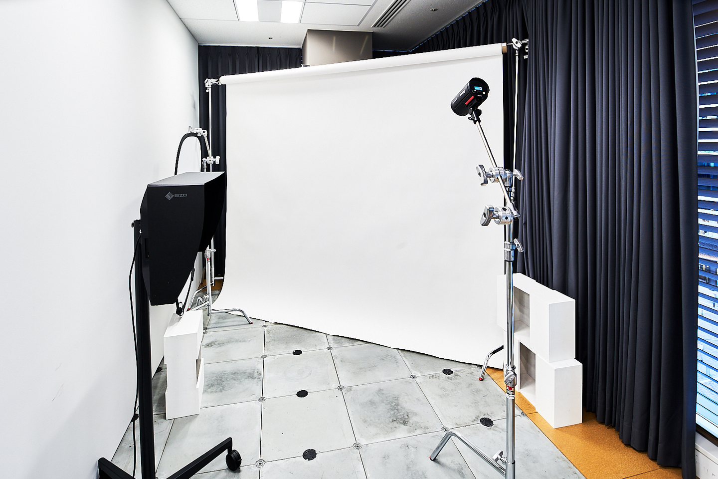 この他にも、ブツ撮りができるスタジオや、印刷物を最適な照明で見られる色校室など、能率的に働けるためのオフィス環境が整っています。