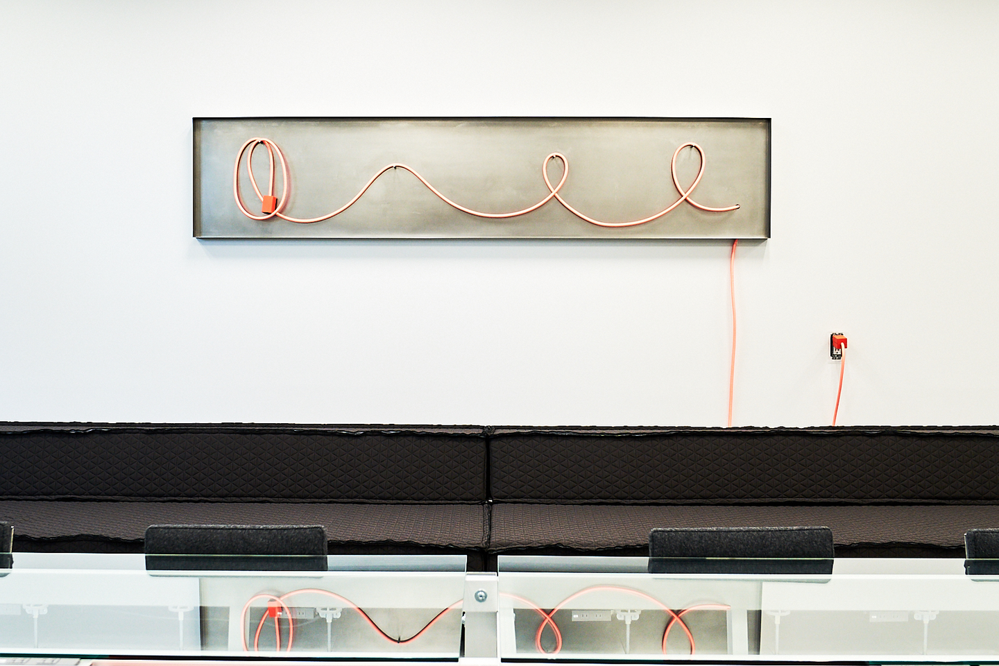 ▲フレームにピンク色の電源コードを格納することで、アート作品のように。