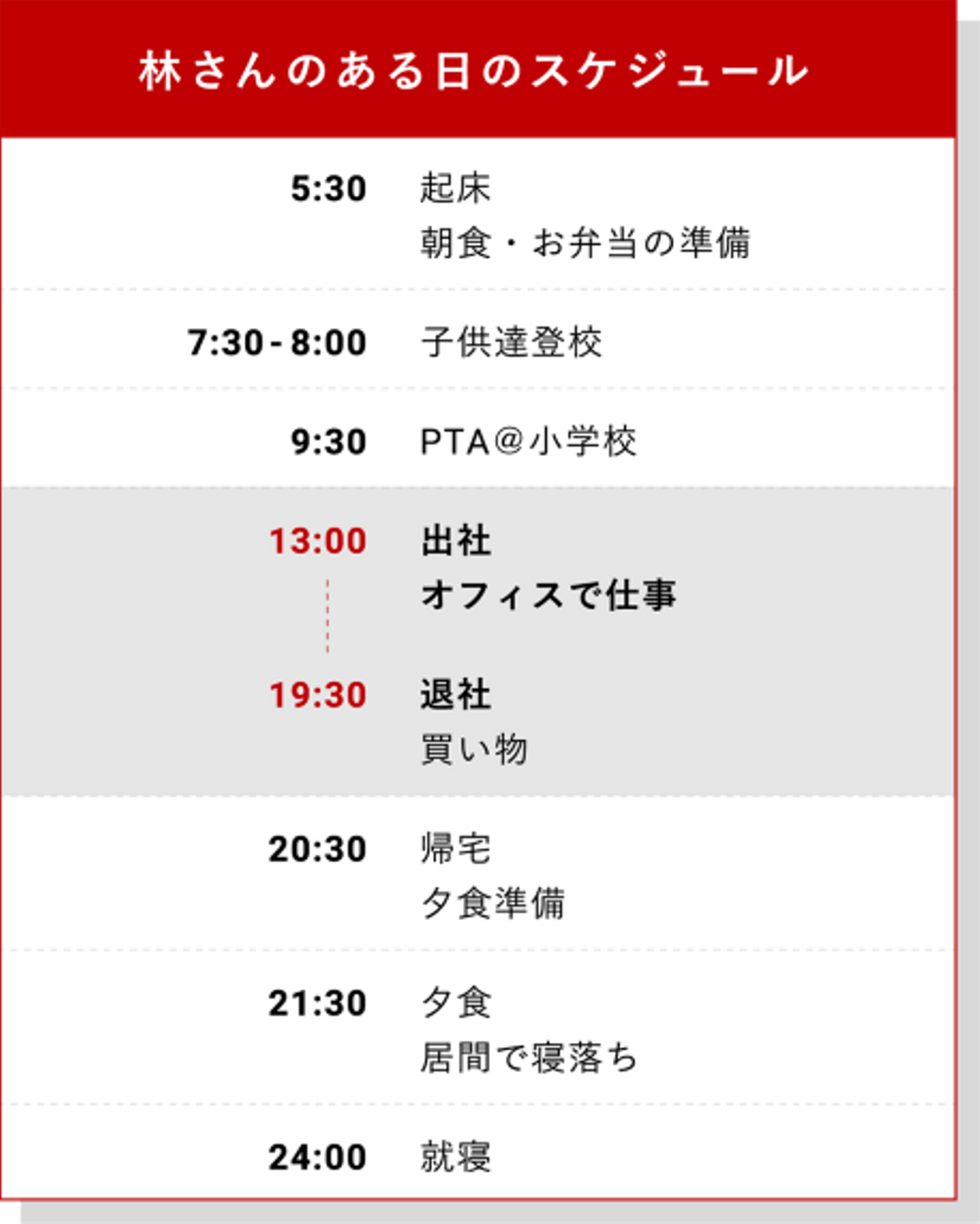 現在お二人のお子さん子育て中とのことですが、ある1日の働き方を教えて下さい。