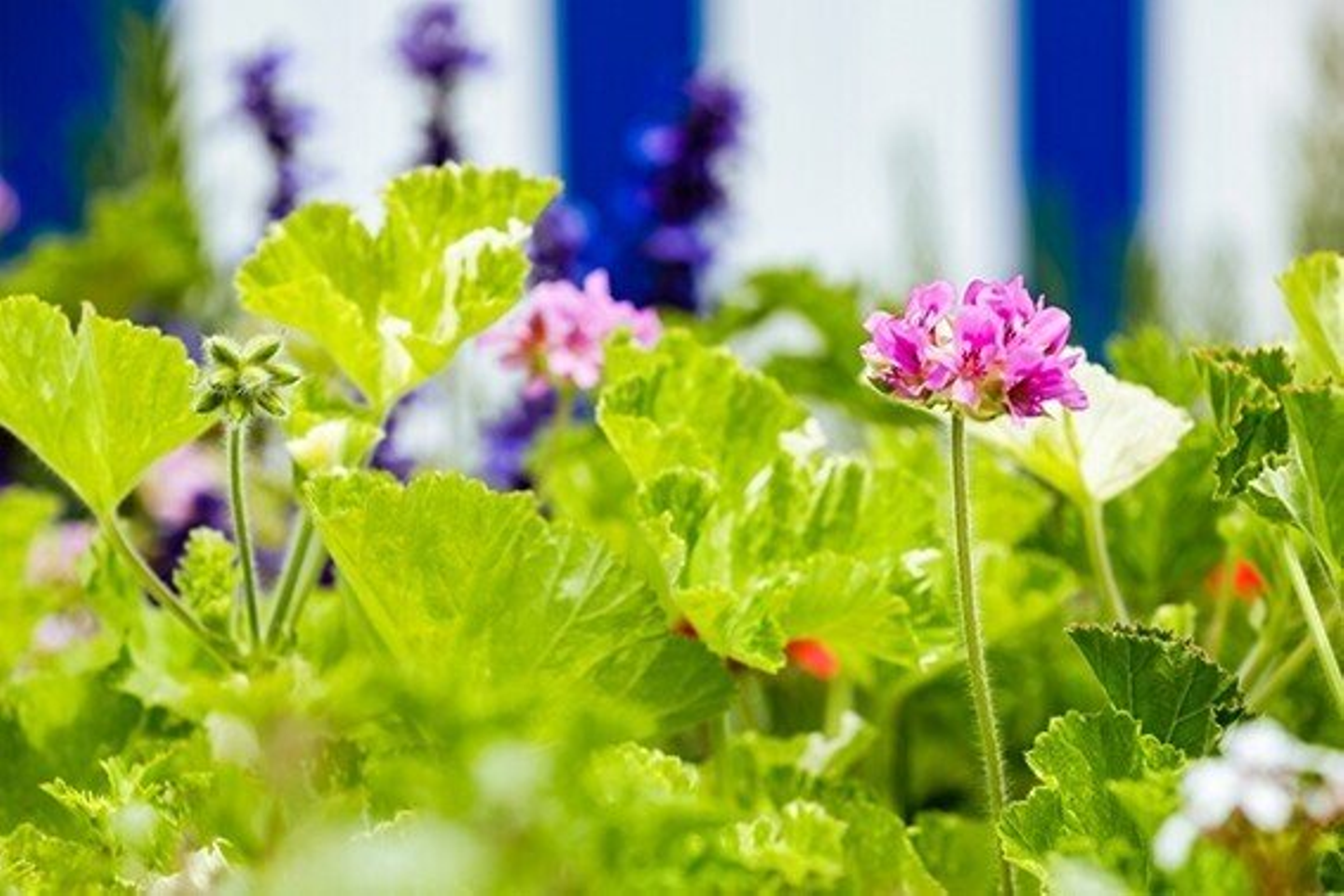 ハーブや柑橘類、ポイントでニューサイランを植えたり、