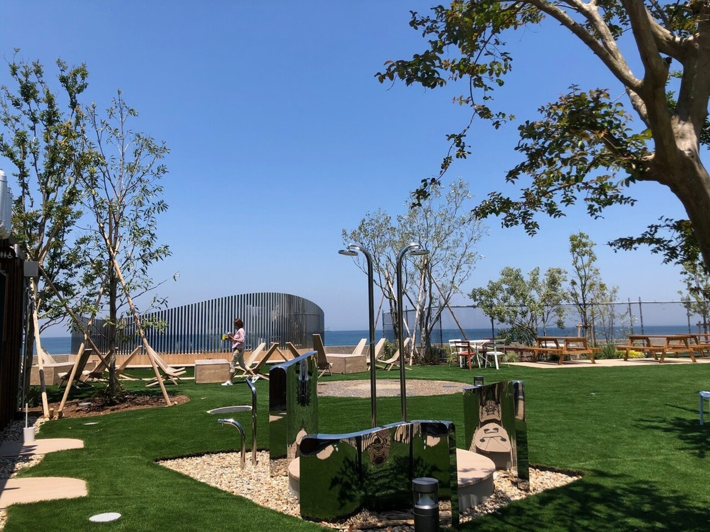 芝生広場ではポップジェットの噴水の周りでのんびり過ごす事が出来ます。