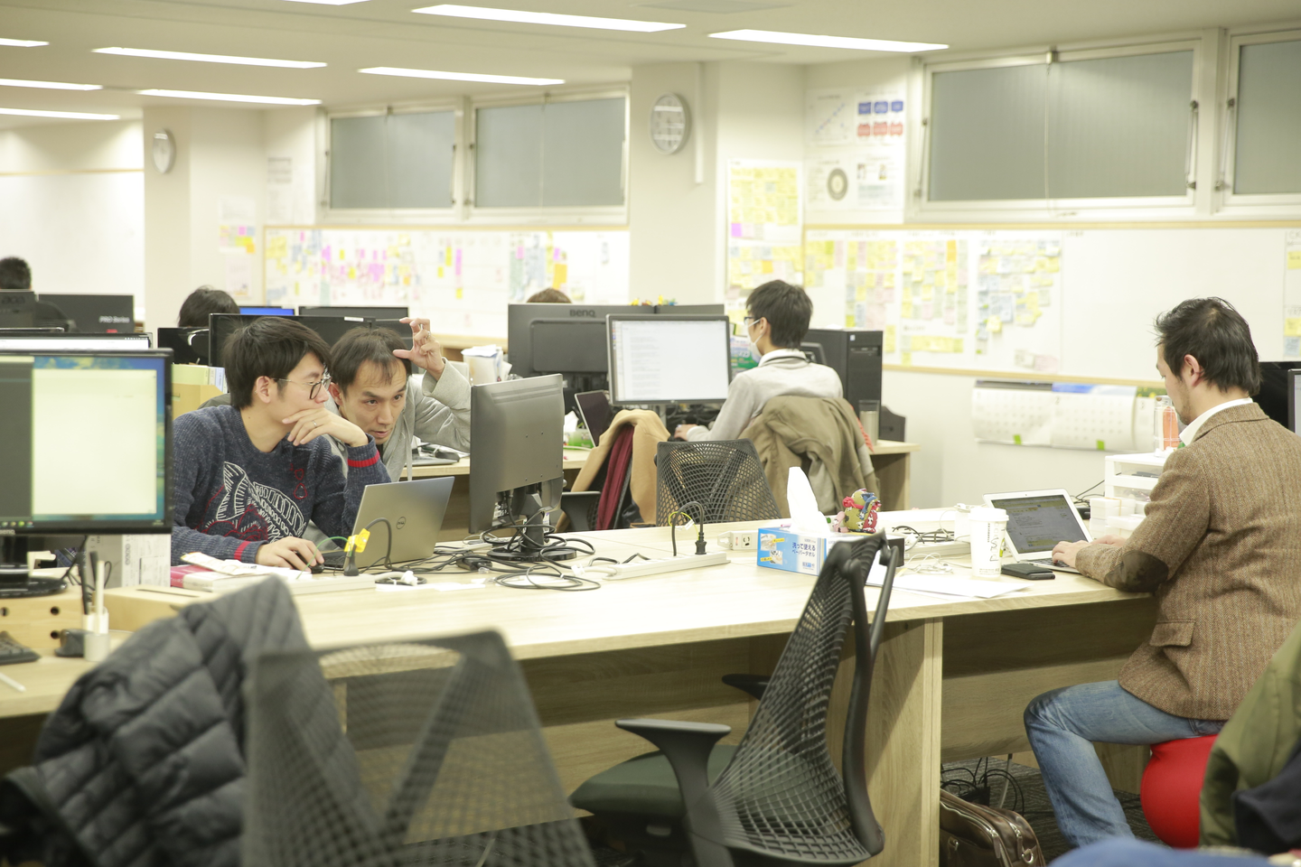 JIRA 信者だったのですが、この方式になってから1週間に2回しかJIRAを開かなくなりました(スプリントを開く時、閉じる時)。バックログアイテムはスチレンボードに3ヶ月分張り出し、スプリントバックログはホワイトボードで管理しています。