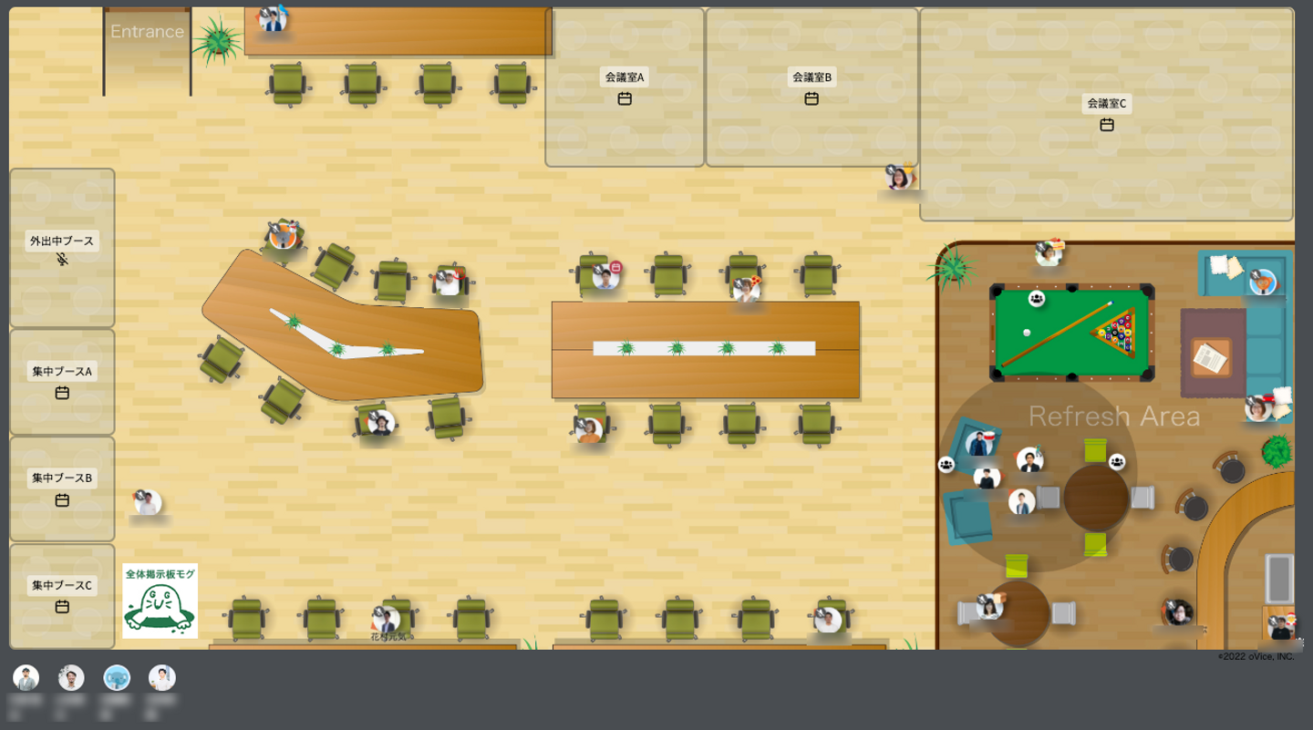 oViceでは会議室を設置することができるので、大人数でのMTGをする際にも便利です。
