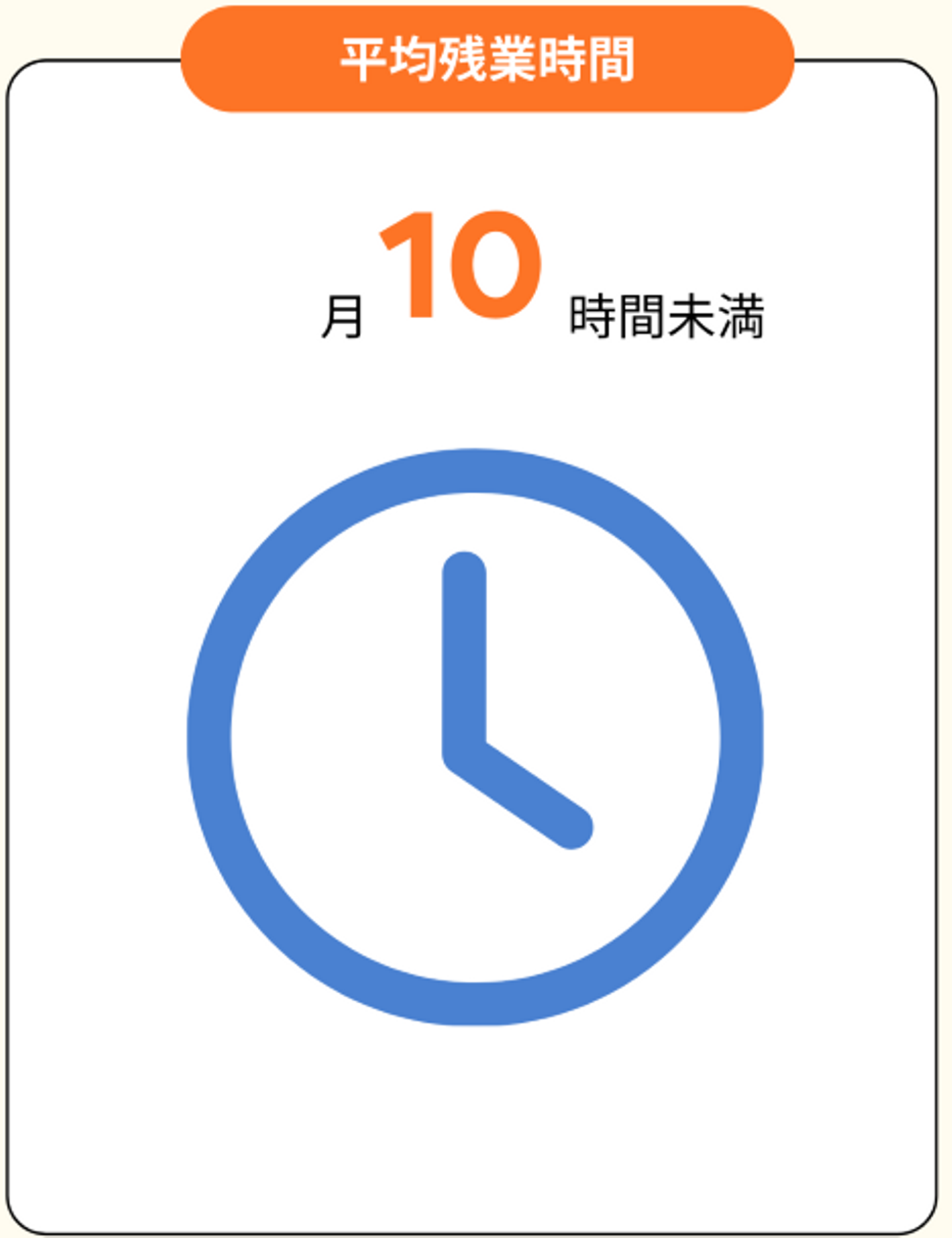 平均の残業時間は月10時間未満。残業時間は少ないです。
