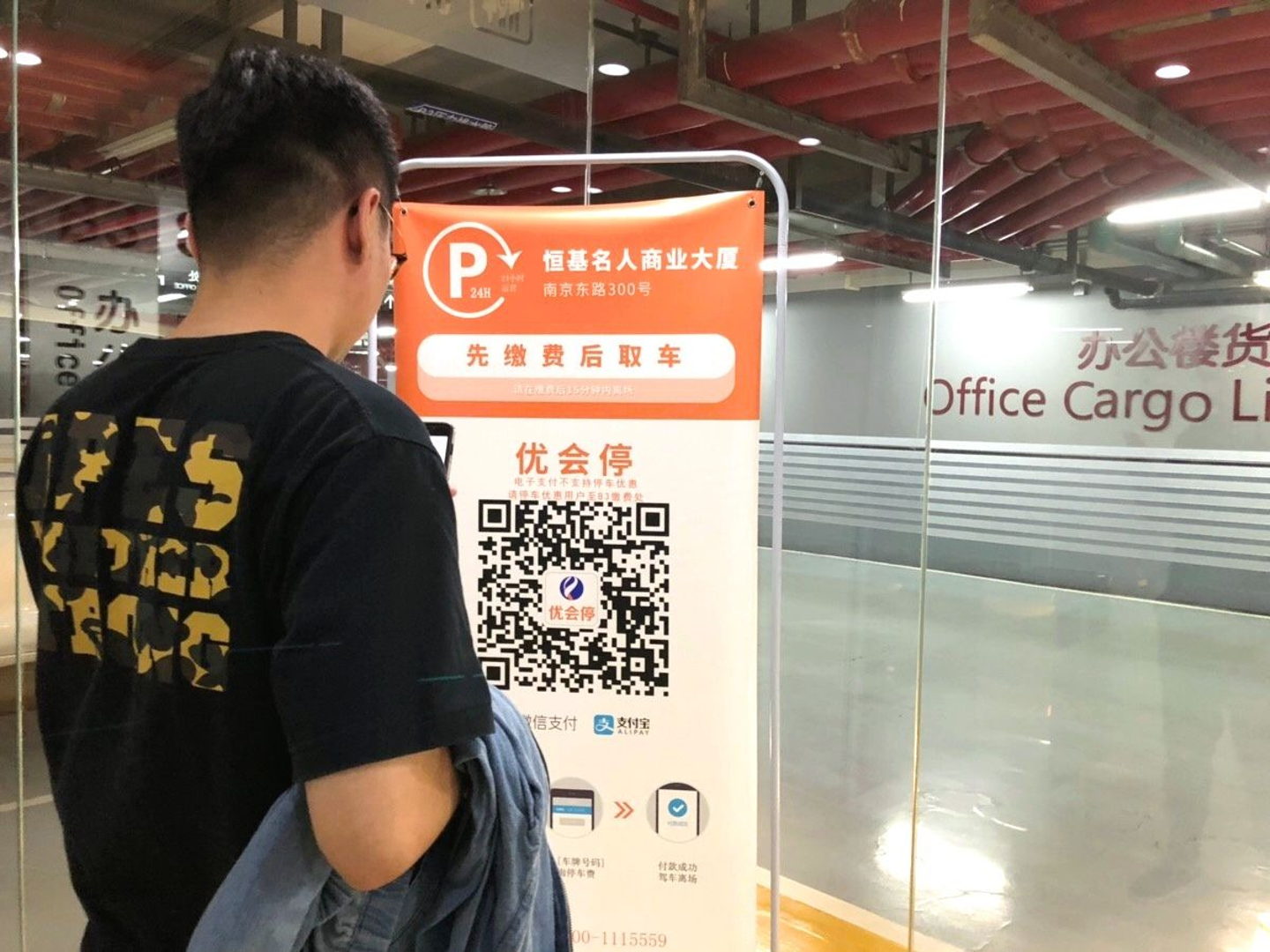 夜景が有名な外灘エリアで駐車し、実際に決済しているときの様子。このときも慣れた手つきで1分もかからず支払い完了!