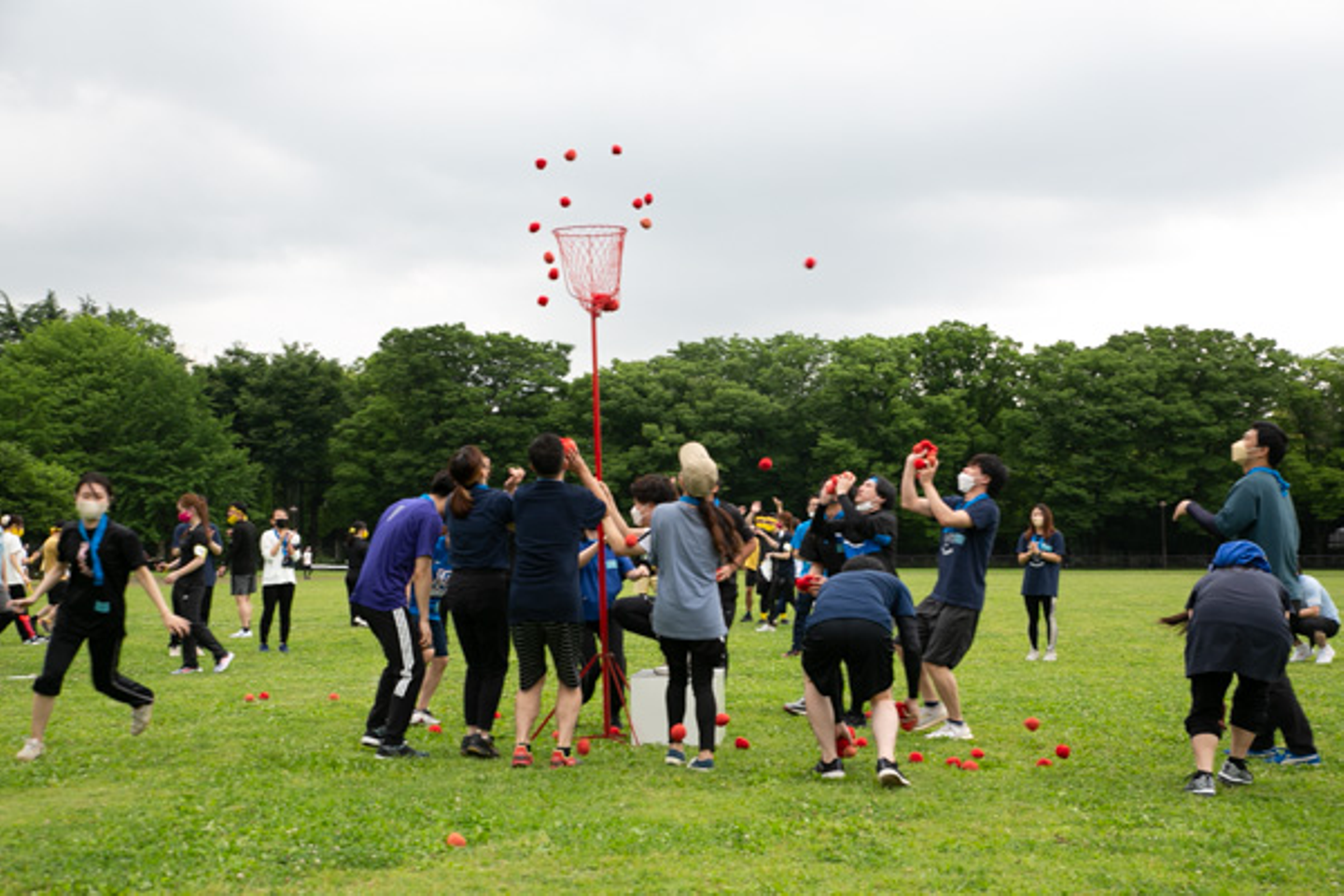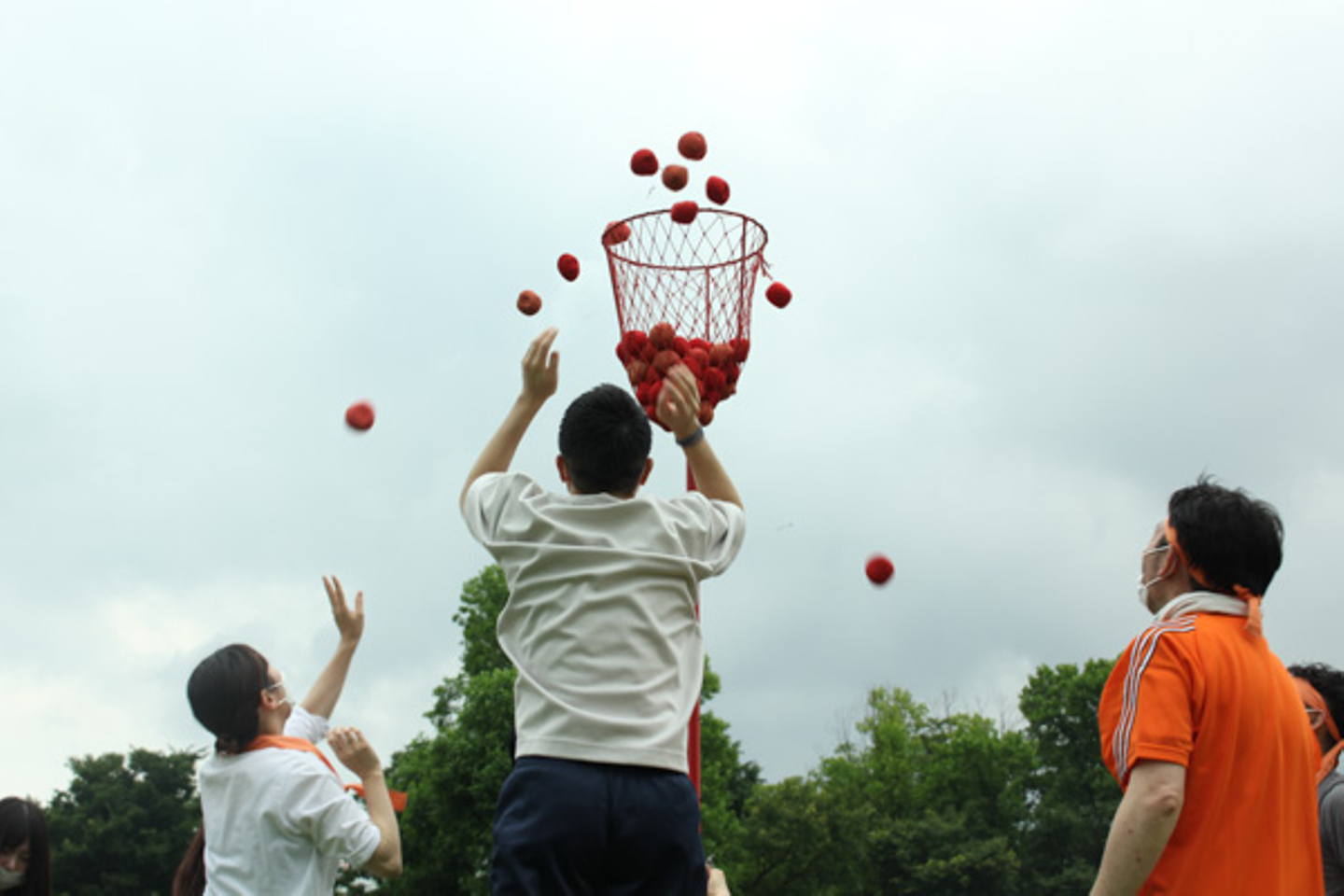 籠をめがけてボールを投げ込む玉入れは、籠から大きくそれる人、100発100中で籠にゴールできる人、さまざまな様子をうかがうことができました。