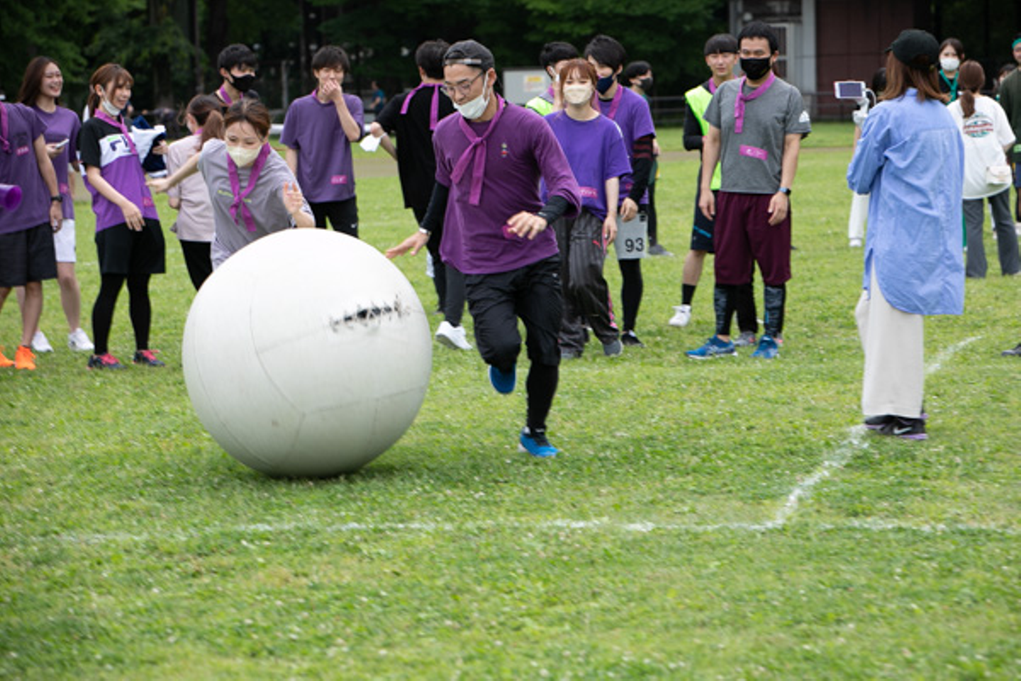 最初の種目は2人1組で行う大玉転がしリレー。各チーム全力でスタートをきりました。