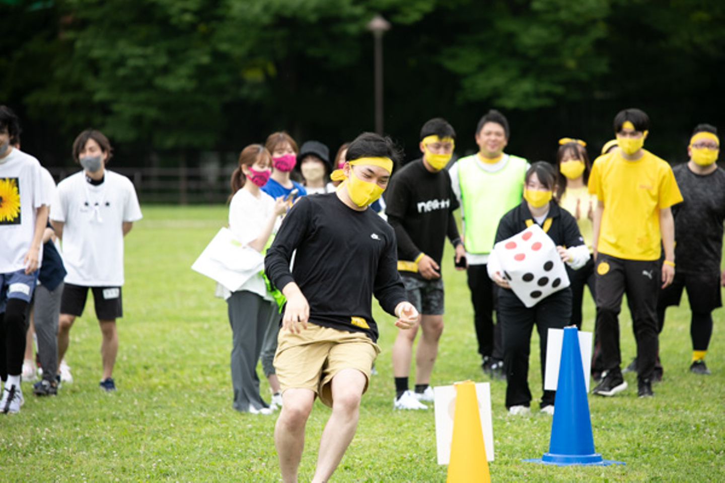サイコロの出た目のコーンまでダッシュです!この段階から各チームの運が少しずつ見えてきます。