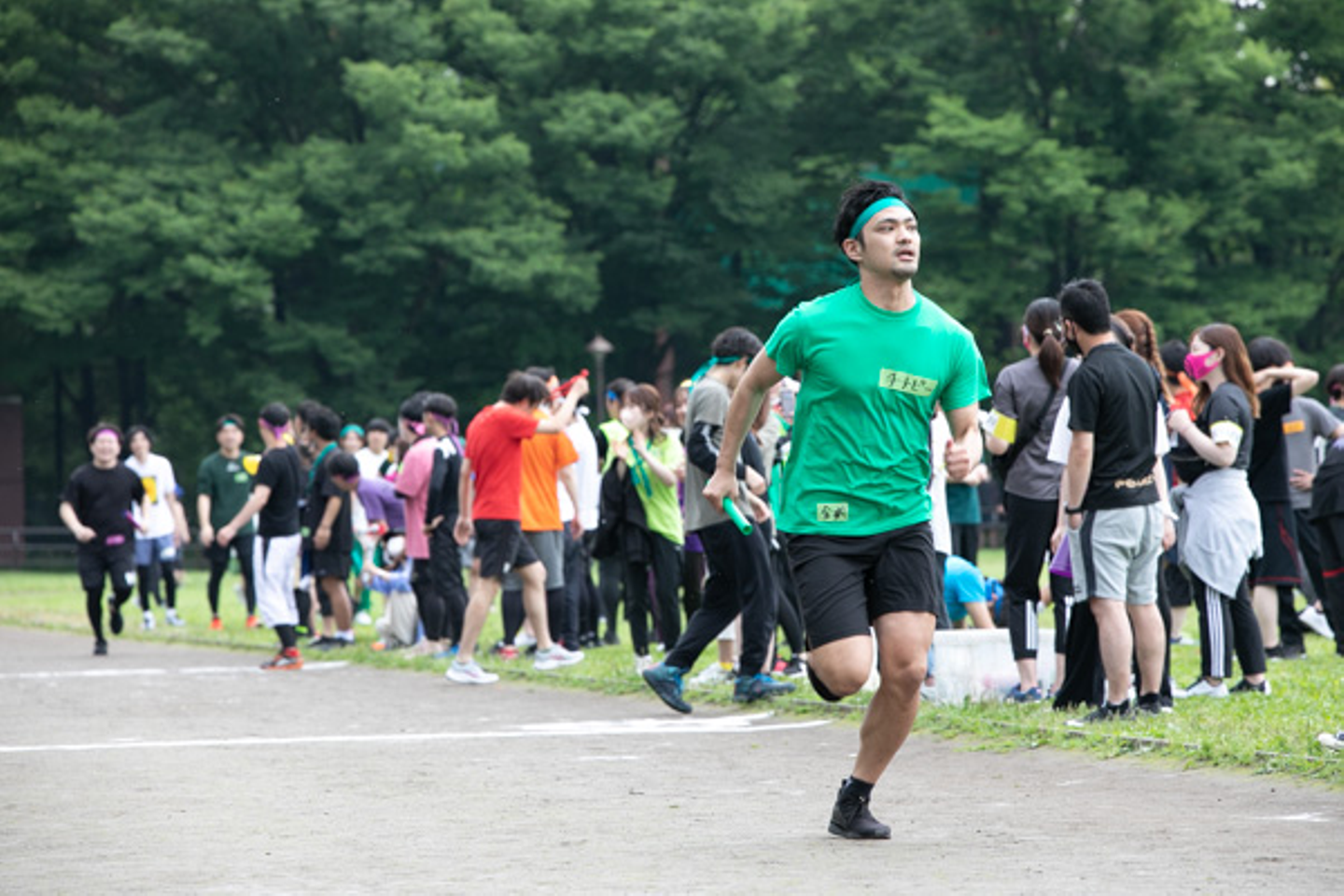 参加者全員がバトンを持って走る全員リレー。バトンという責任をそれぞれが感じ、勝利へと全力疾走します。応援する姿も熱が入っていますね。