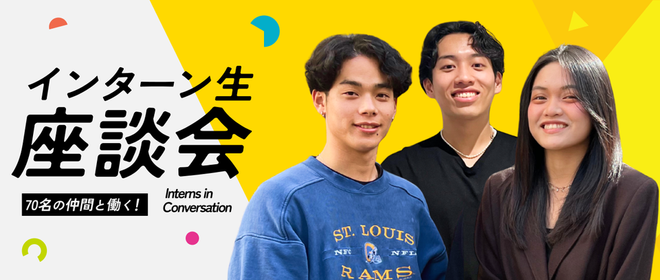 大学1年生から大学4年生までの幅広いメンバーが、日々成果を出しています。インターン未経験で入社される方が多いですが、1からサポートしますので、ご安心ください。学生生活で少しでも周りに差をつけたい成長意欲の高い方のエントリーをお待ちしてます!