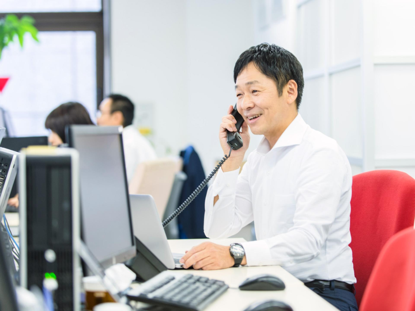 当社は小売業や飲食業の顧客比率が高く、前向きで活力がある企業や経験豊富でバイタリティーに溢れたお客様と接する機会が多いです。毎日が学びと気づきの連続で、成長が実感できますよ。