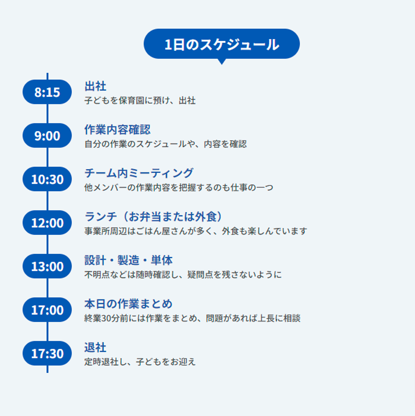 柔軟な働き方ができるというのが最大の魅力だと思いますね。私は未就学児の子どもがいるため、定時になったらすぐ帰宅しています。家族の事情も考慮した上で働き方を決めさせてもらい、大変有難く思います。もちろん子育て世代がバリバリ働くのも歓迎でしょうし、時短勤務を希望する場合も、柔軟に働き方を受け入れられる環境があると思いますよ。