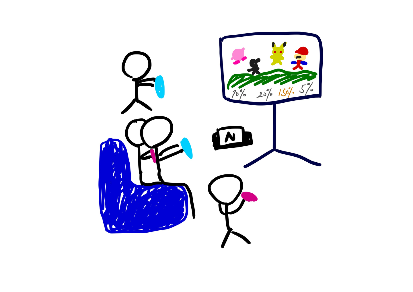 みんなで最近発売された某有名な乱闘ゲームをしている様子です。